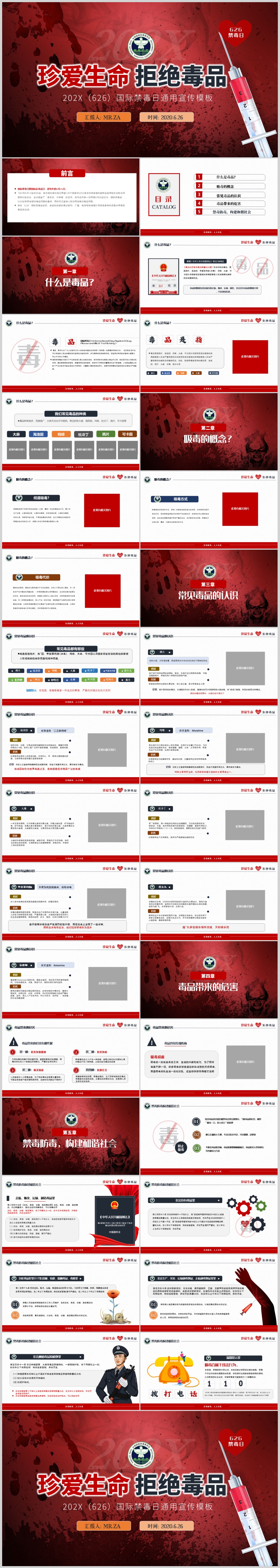 红色2022年626国际禁毒日通用宣传教育主题课件ppt模板