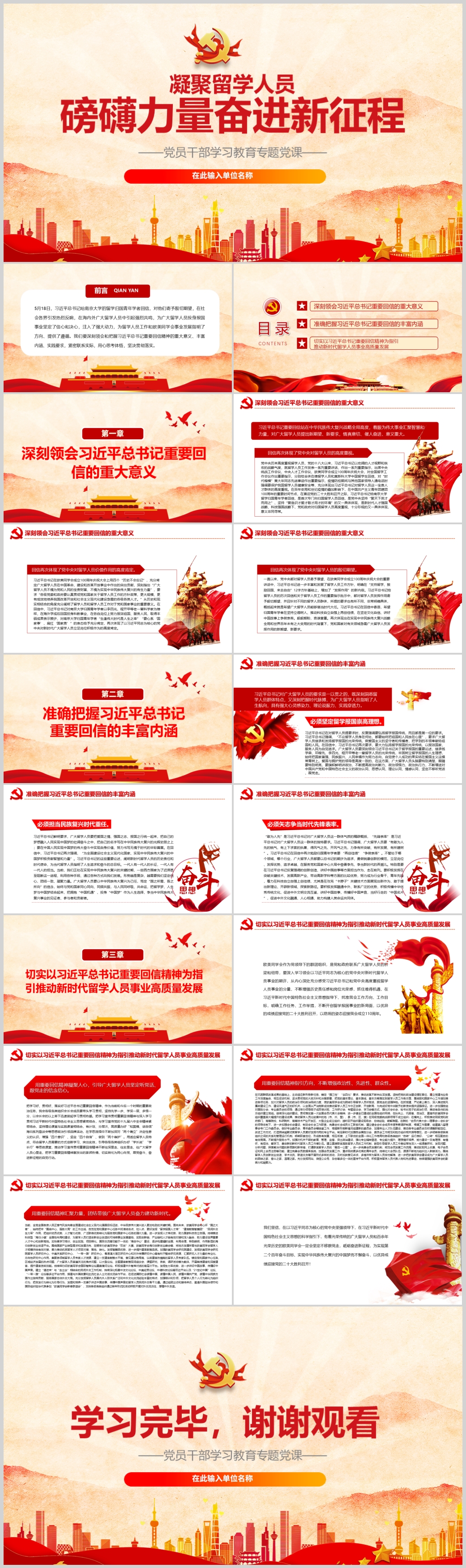 2022大学的留学归国凝聚留学人员磅礴力量奋进新征程党课PPT模板(内含WORD演讲