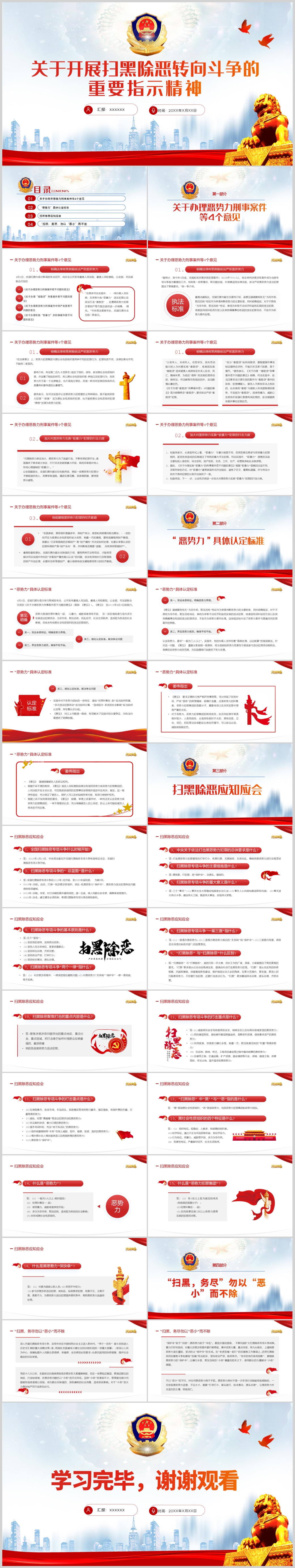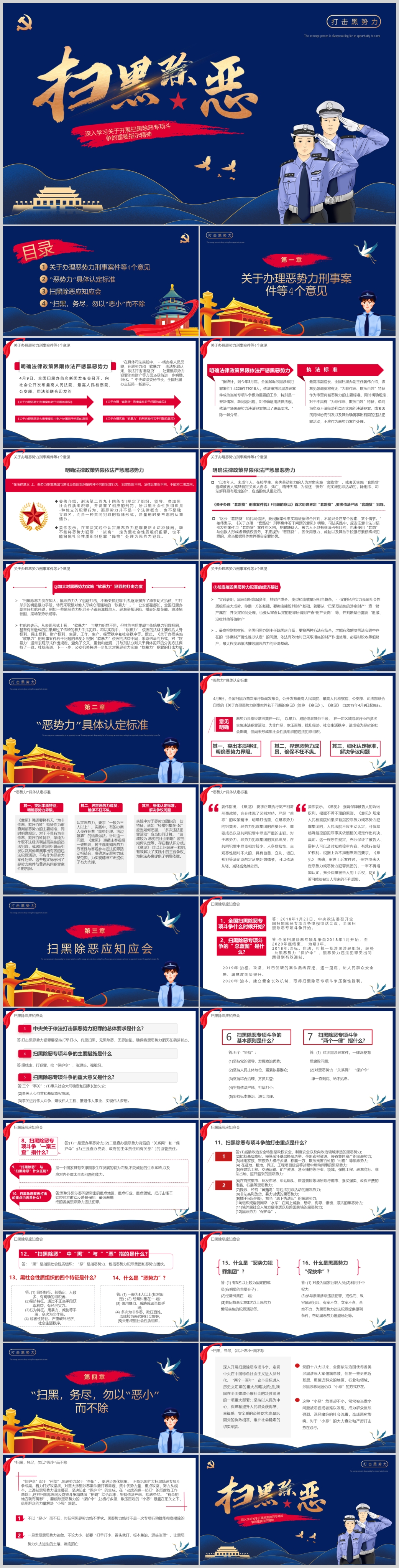 2022年推动扫黑除恶常态化坚决打击黑恶势力党课PPT模板(内含word演讲稿)