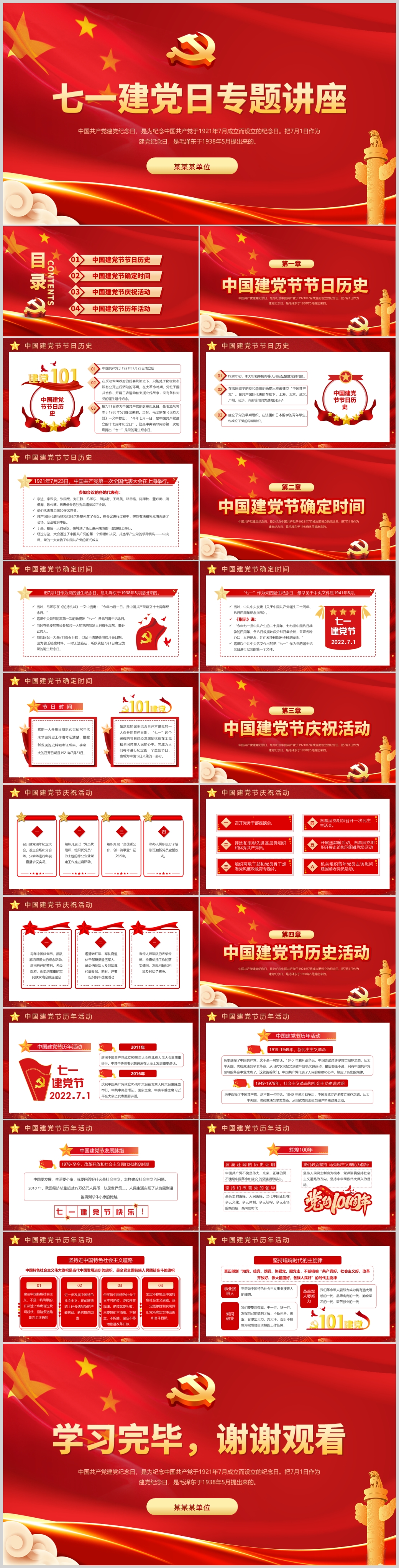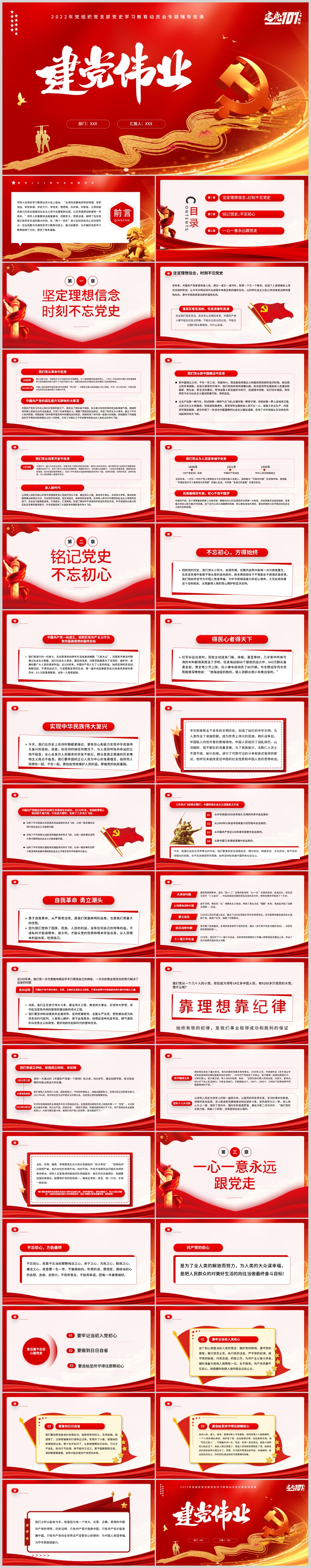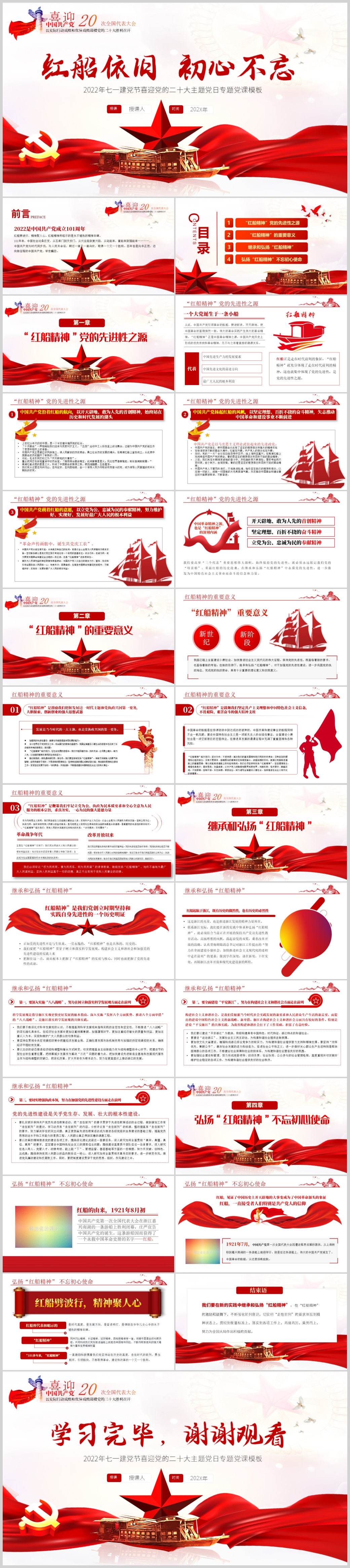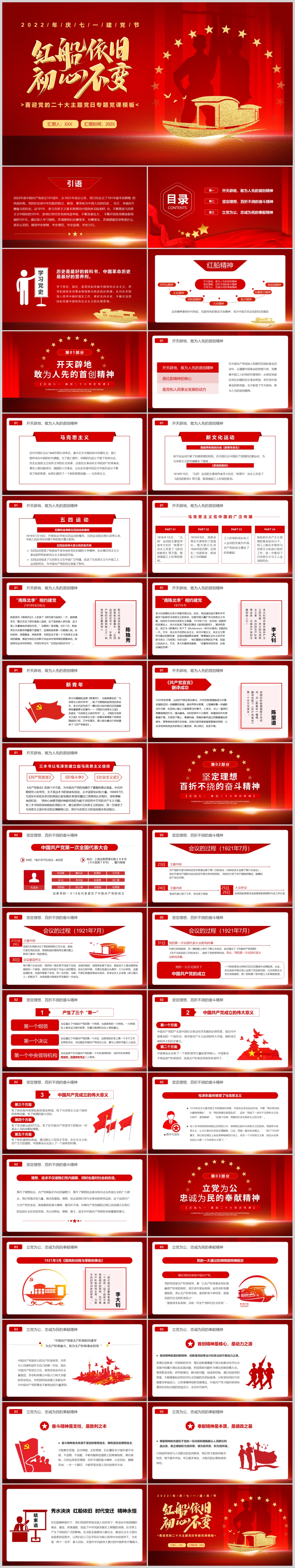 2022年七一喜迎党的二十大主题党日弘扬红船精神主题党课PPT模板(内含WORD演讲