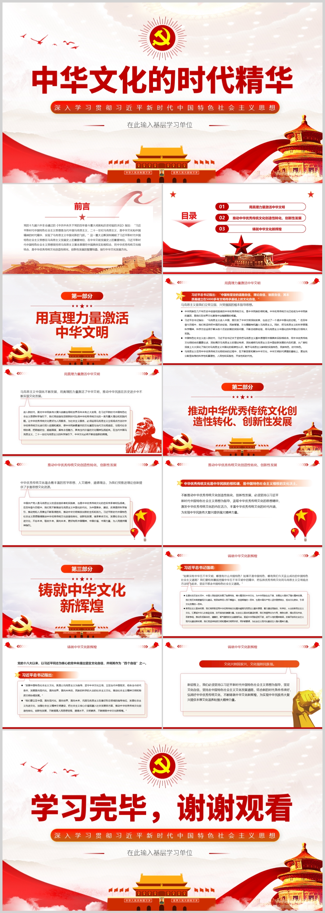 中国精神的时代精华党课主题党日党支部PPT模板(内含WORD演讲稿)