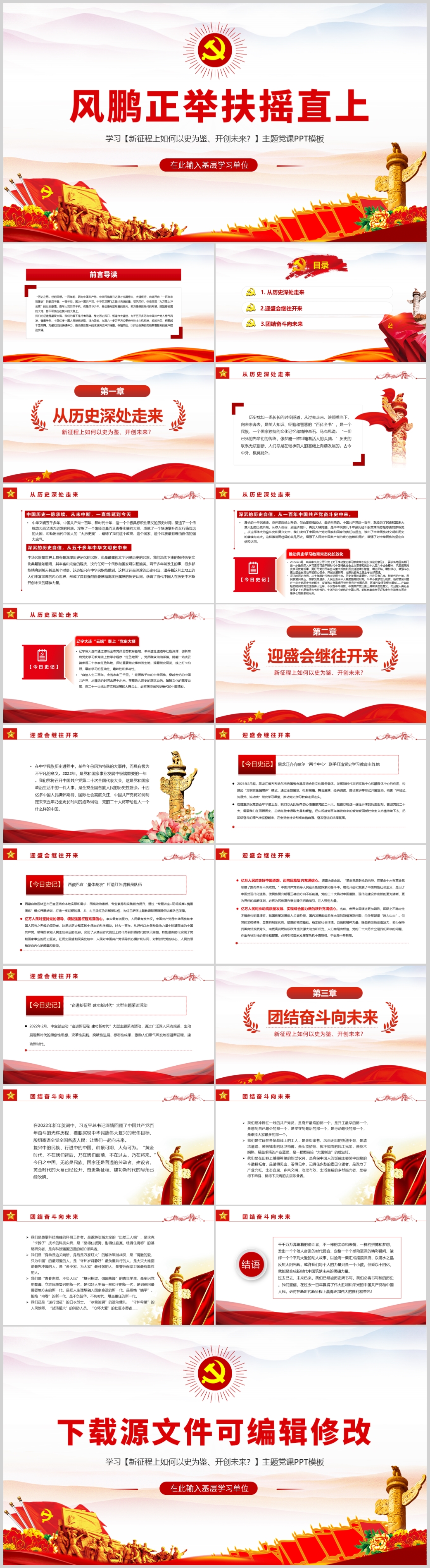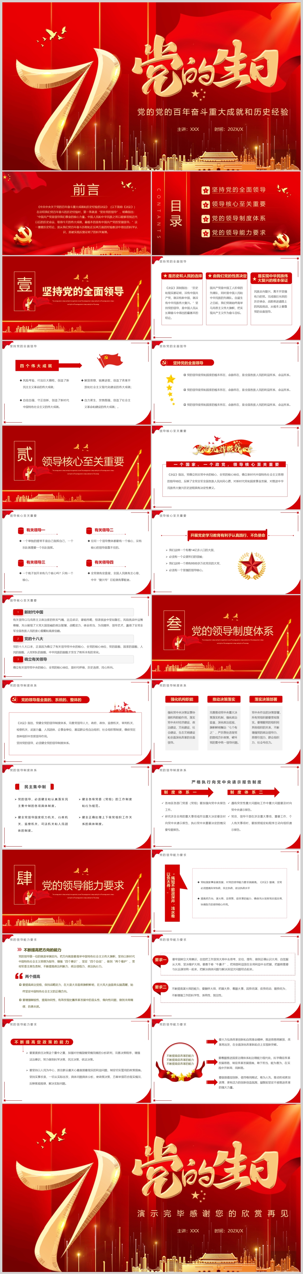 七一建党节如何以史为鉴、开创未来专题党课PPT模板(内含WORD演讲稿)