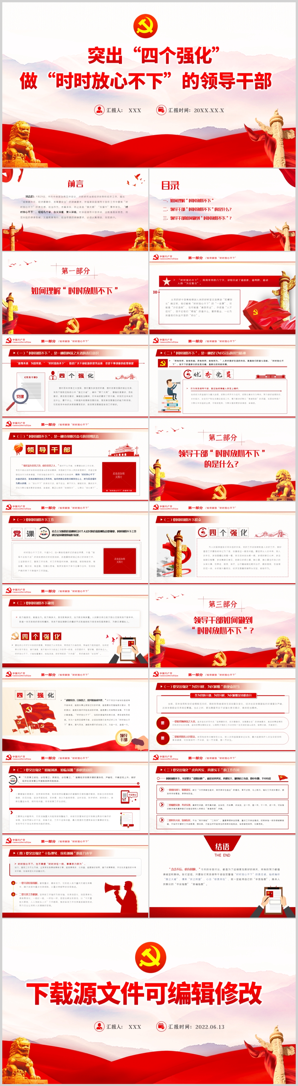 学习突出四个强化做时时放心不下领导干部党课PPT模板 (内含WORD演讲稿)