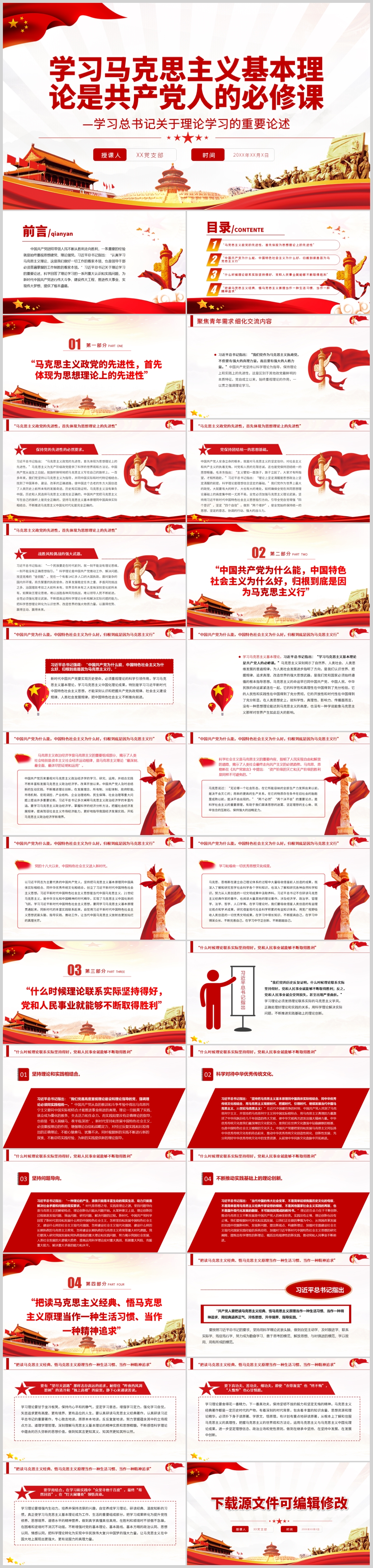 学习马克思主义基本理论是共产党人的必修课党课PPT模板(内含WORD演讲稿)