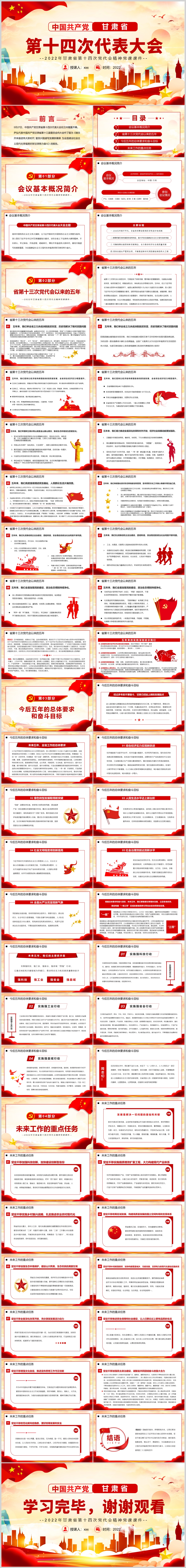 2022年甘肃省第十四次党代会精神党课PPT模板
