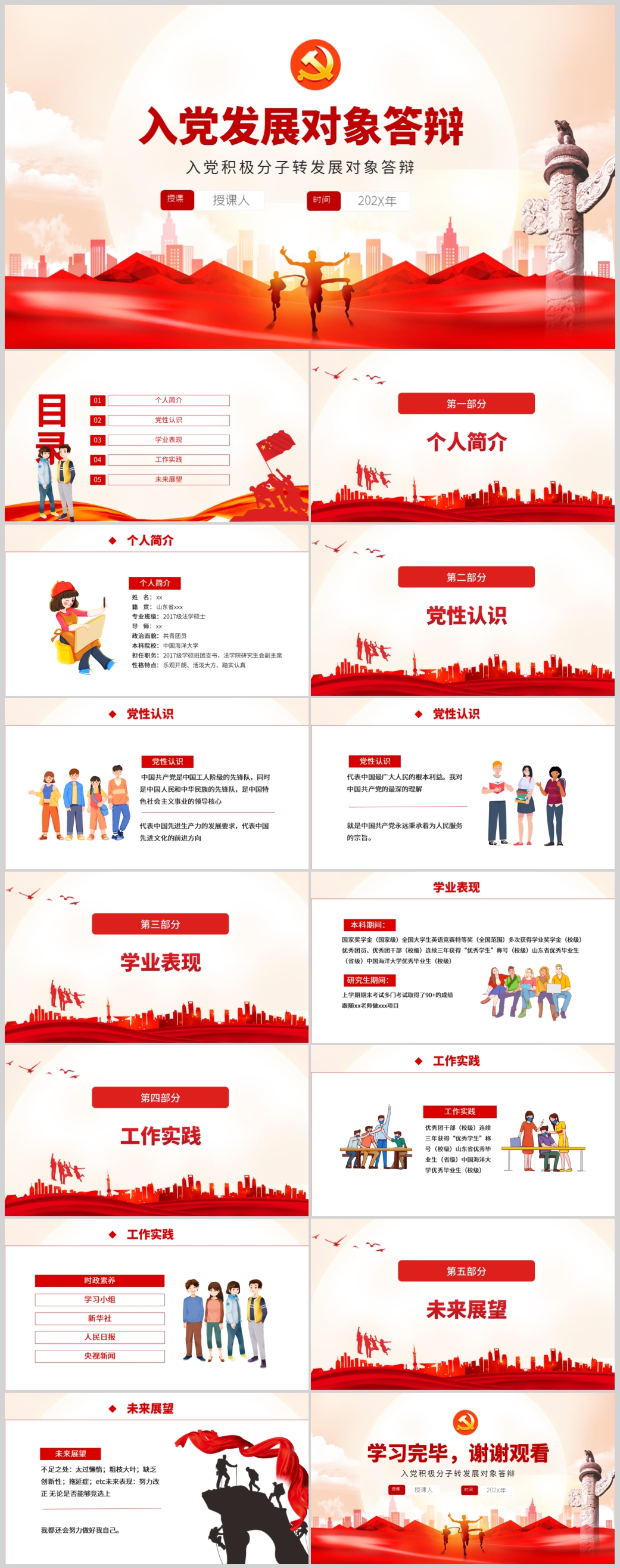 七一建党日入党积极分子转发展对象答辩入党申请ppt模板