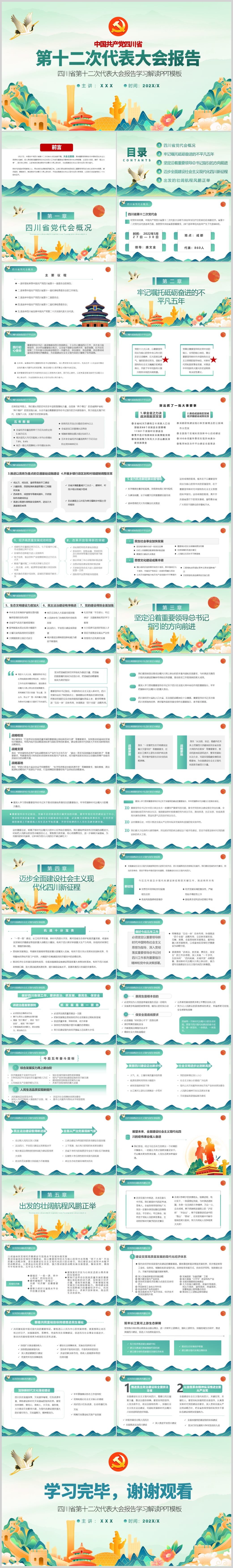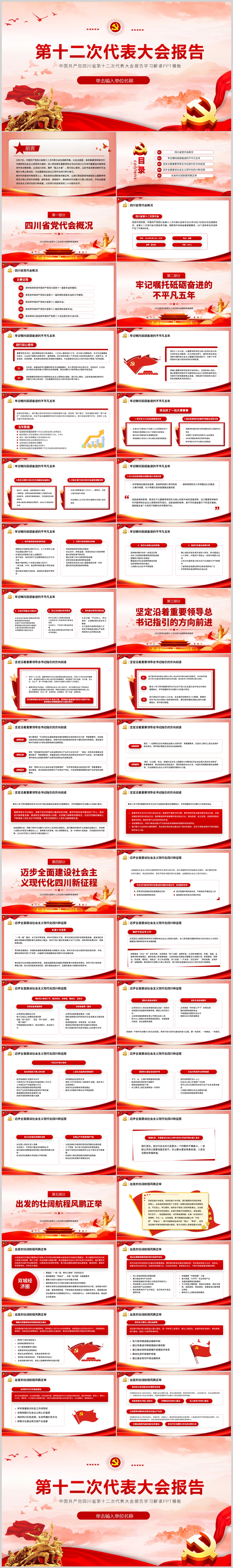 中国共产党四川省第十二次代表大会报告党课PPT模板(内含WORD演讲稿)