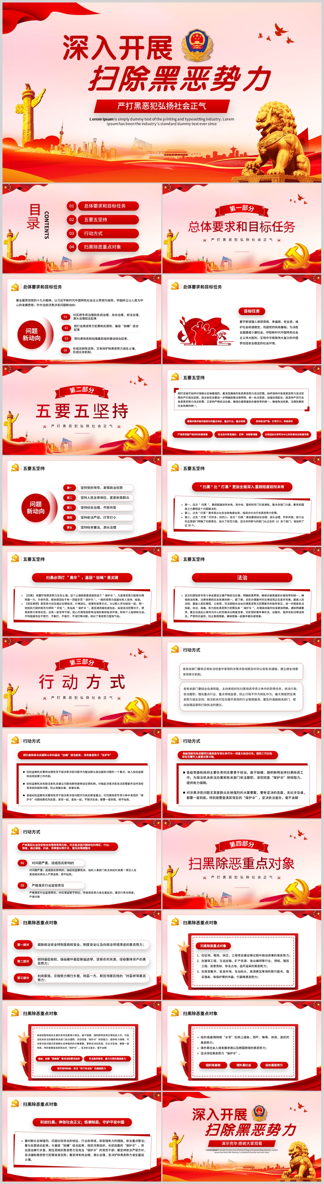 学习扫除黑恶势力严打黑恶犯弘扬社会正气党课PPT模板