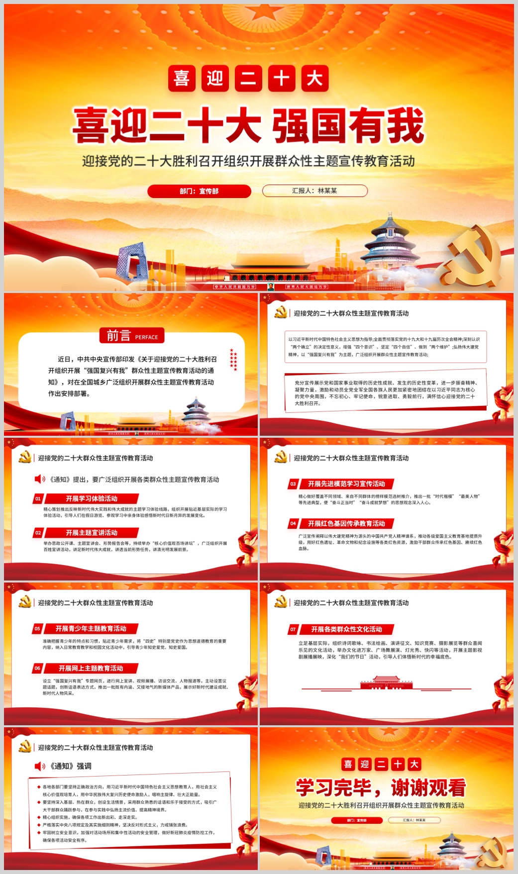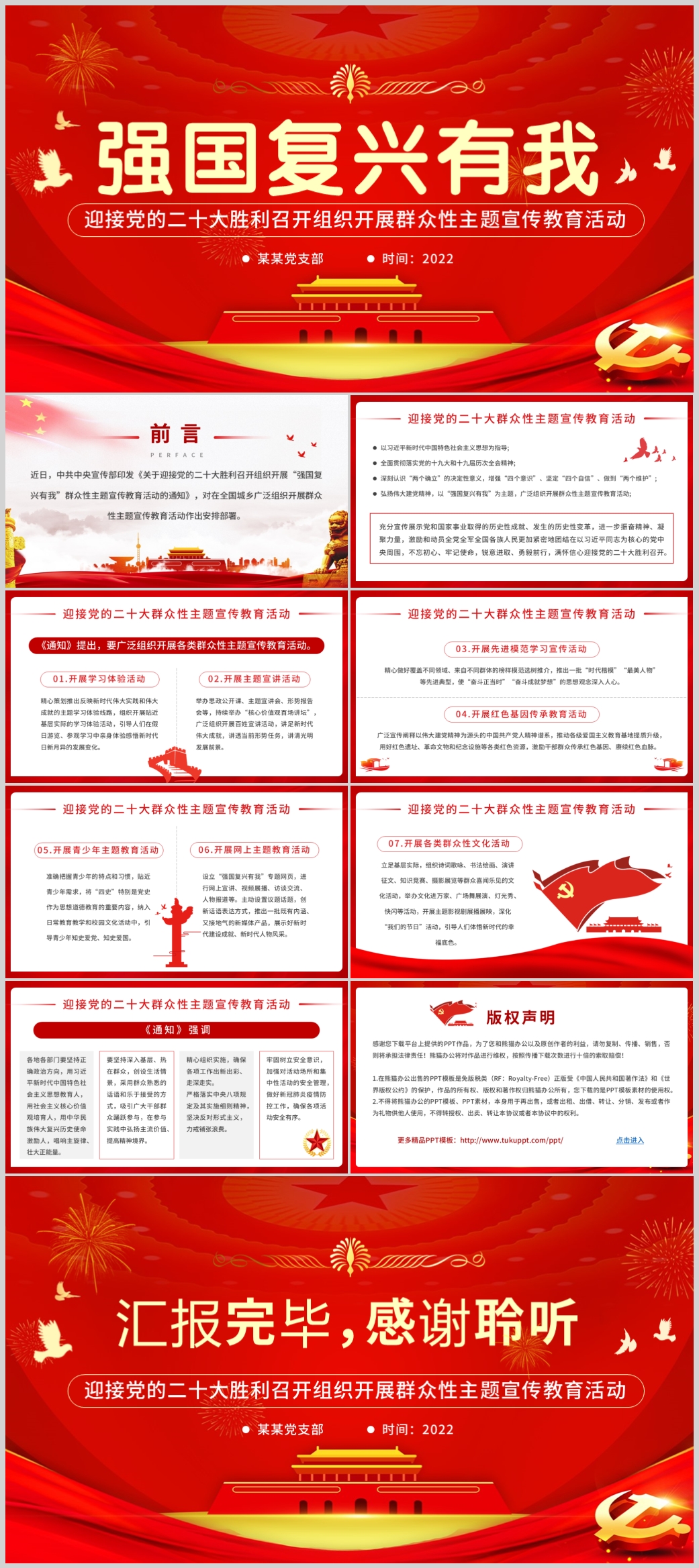 喜迎二十大强国复兴有我主题宣传教育活动党课PPT模板(内含WORD演讲稿)