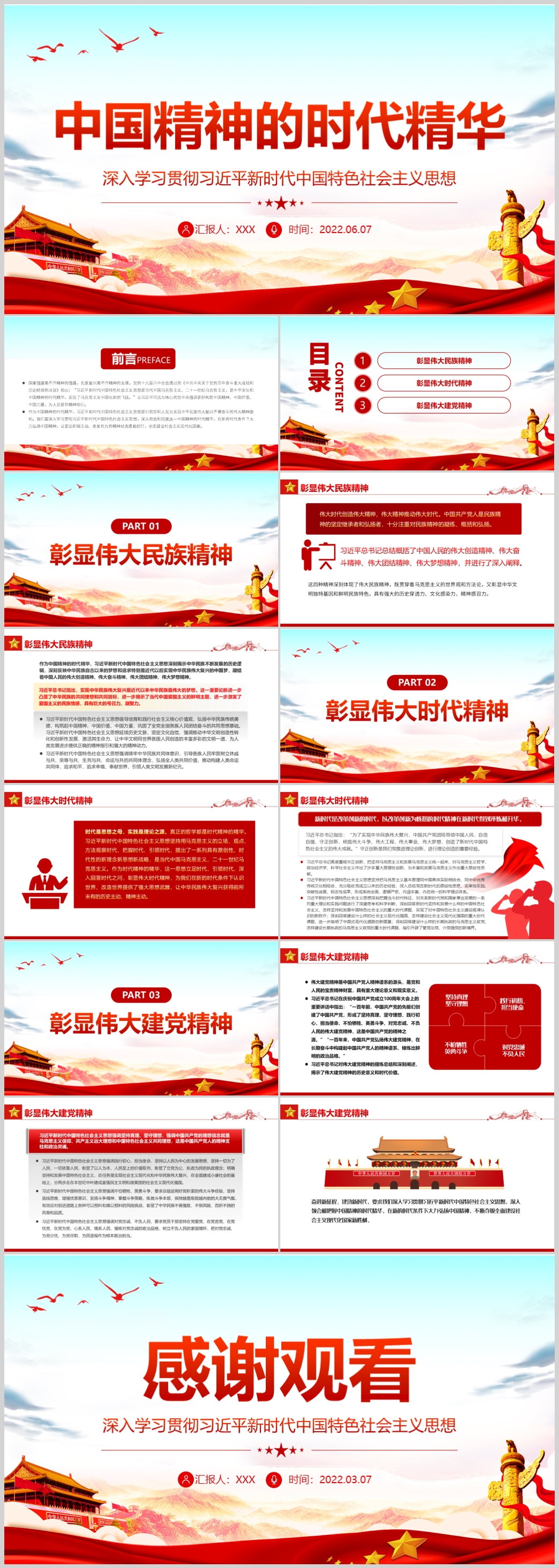 中国精神的时代精华彰显伟大民族精神主题党课PPT模板(内含WORD演讲稿)