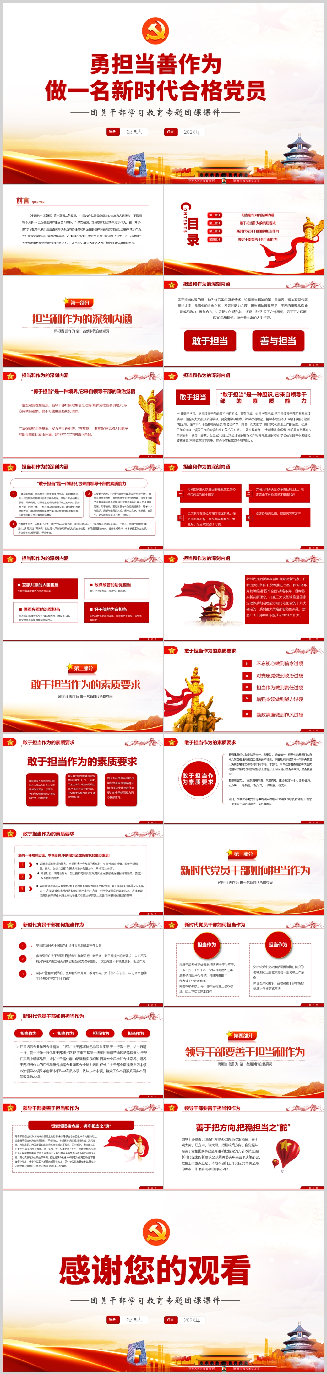 2022年党员干部勇担当善作为做一名新时代合格党员党课PPT模板