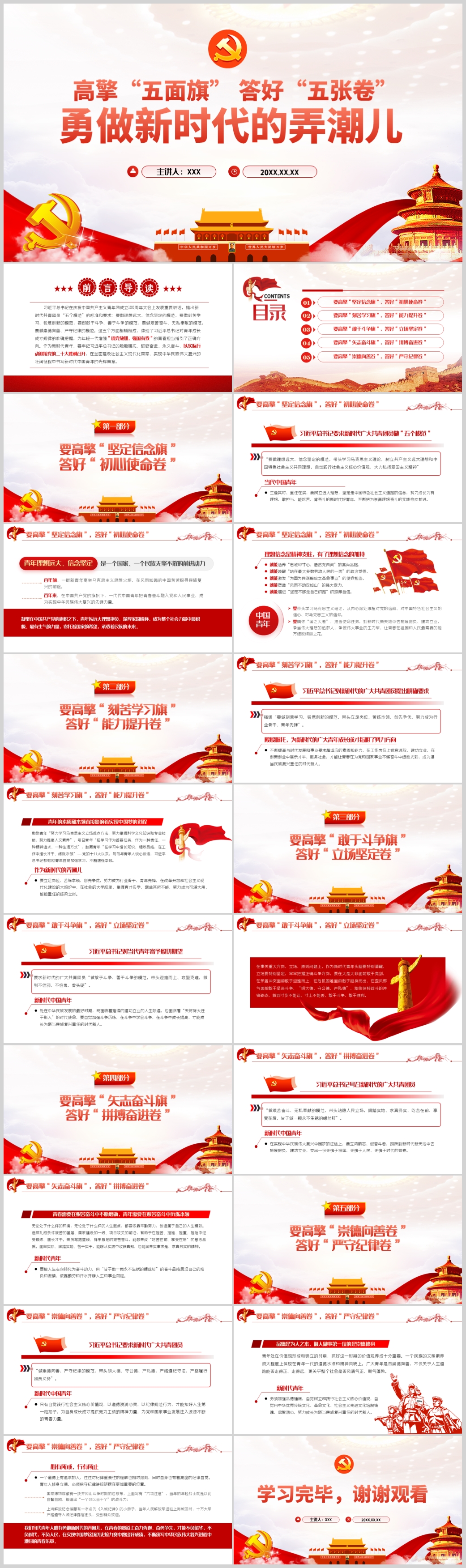 学习高擎五面旗答好五张卷共青团百年喜迎二十大党课PPT模板(内含WORD演讲稿