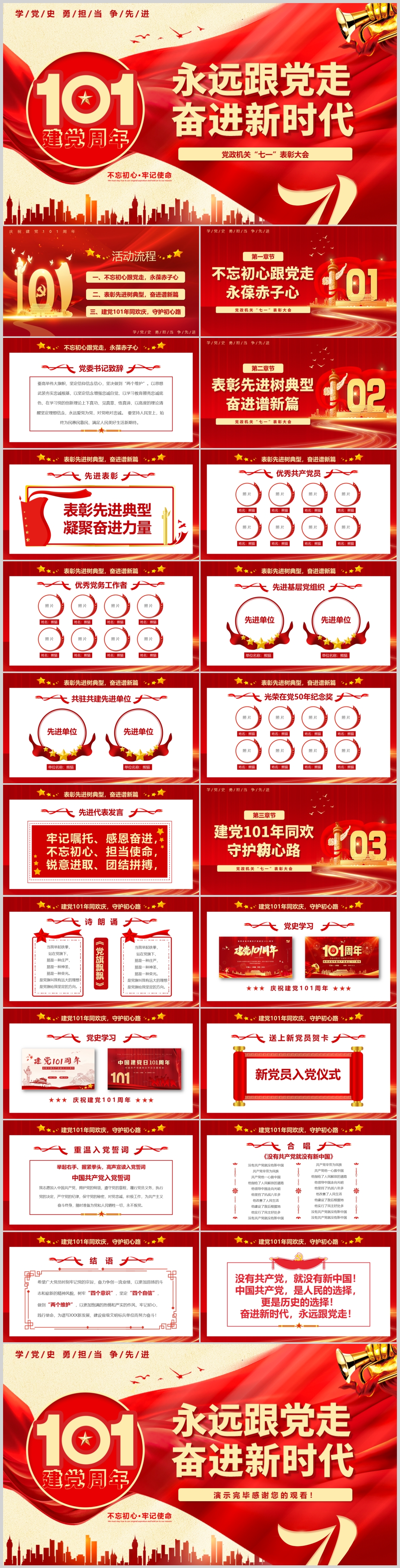七一建党101周年远跟党走奋进新时代主题课件PPT模板
