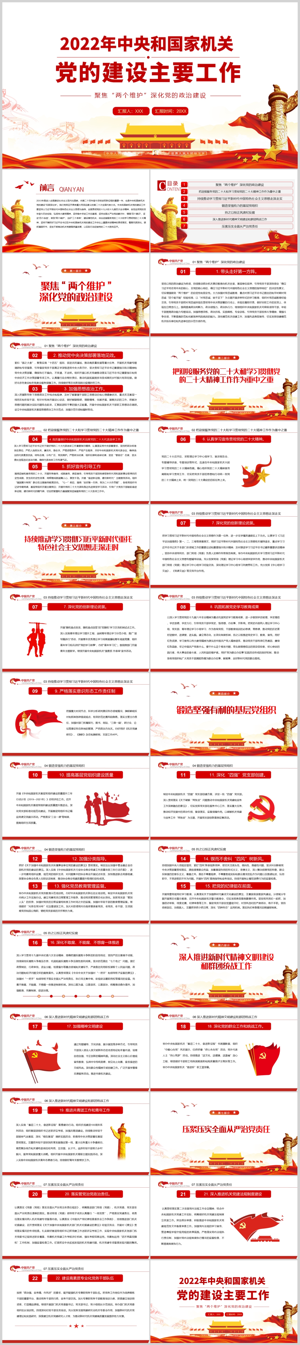 2022年喜迎二十大党的建设主要工作述职报告PPT模板(内含WORD演讲稿)