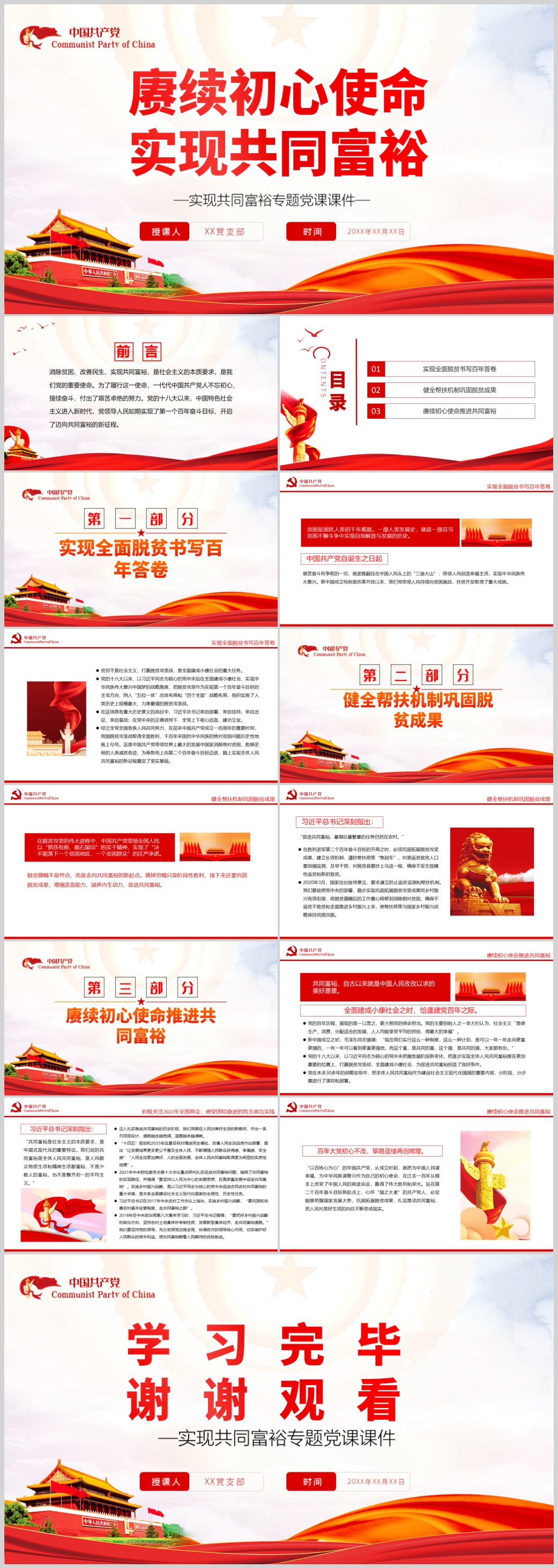 赓续初心使命实现共同富裕专题党课课件ppt模板