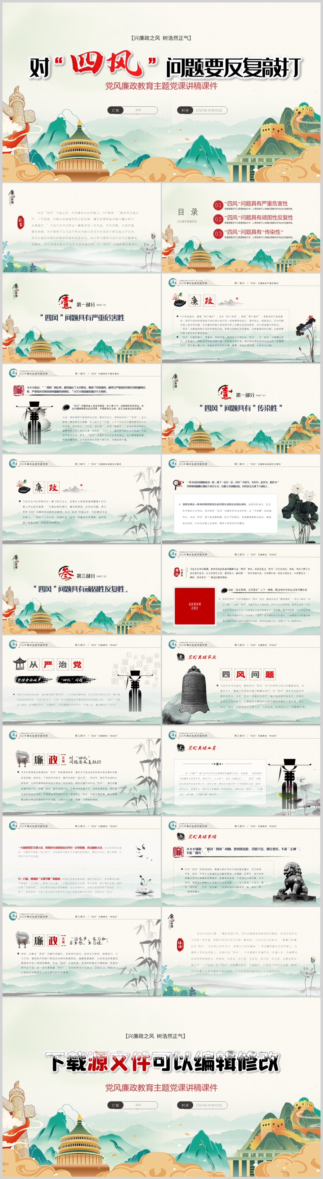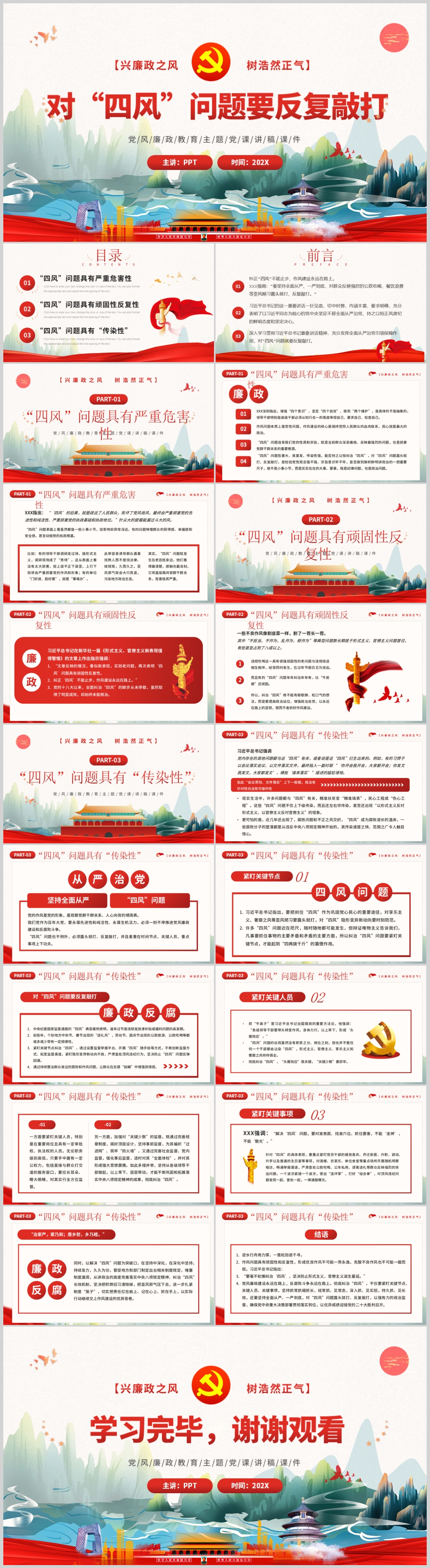 2022年廉政党对四风问题要反复敲打党建微党课PPT模板(内含WORD演讲稿)