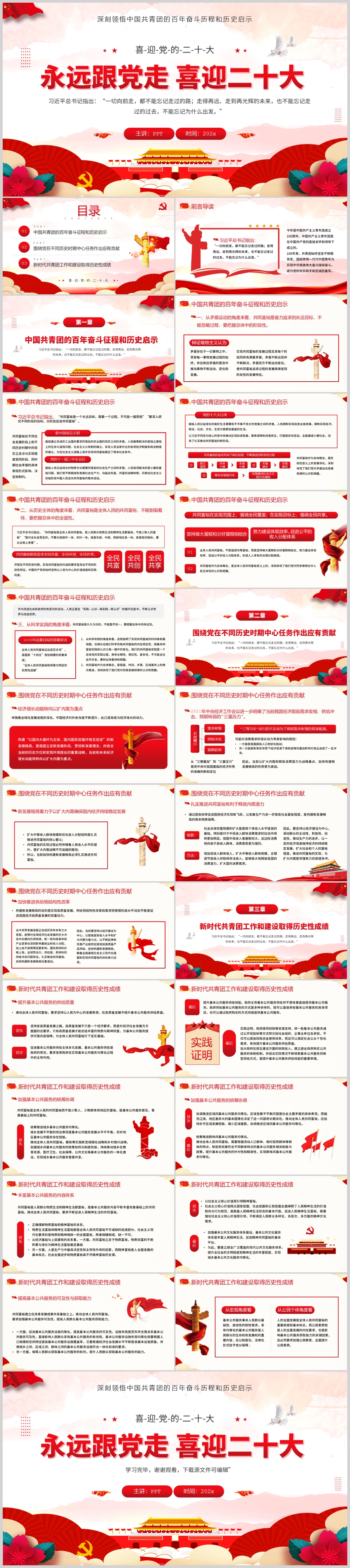 喜迎二十大共青团的百年奋斗团课ppt模板(内含WORD演讲稿)