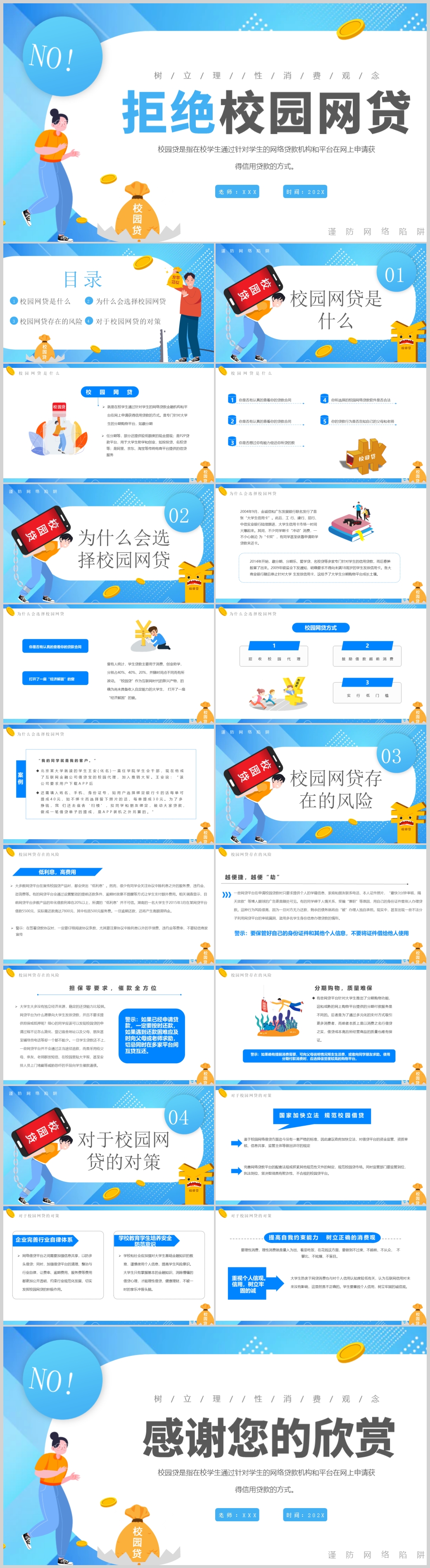 卡通拒绝校园网络借贷主题班会校园贷网络贷款PPT模板