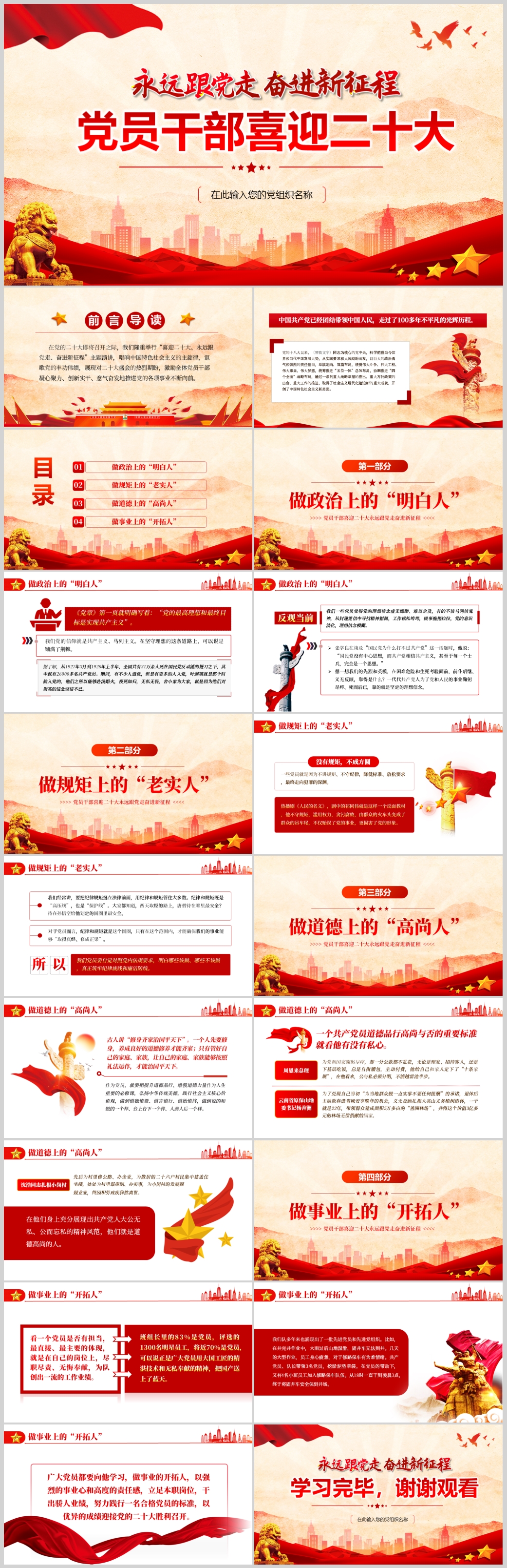 喜迎二十大党员干部教育主题党课PPT模板(内含WORD演讲稿)