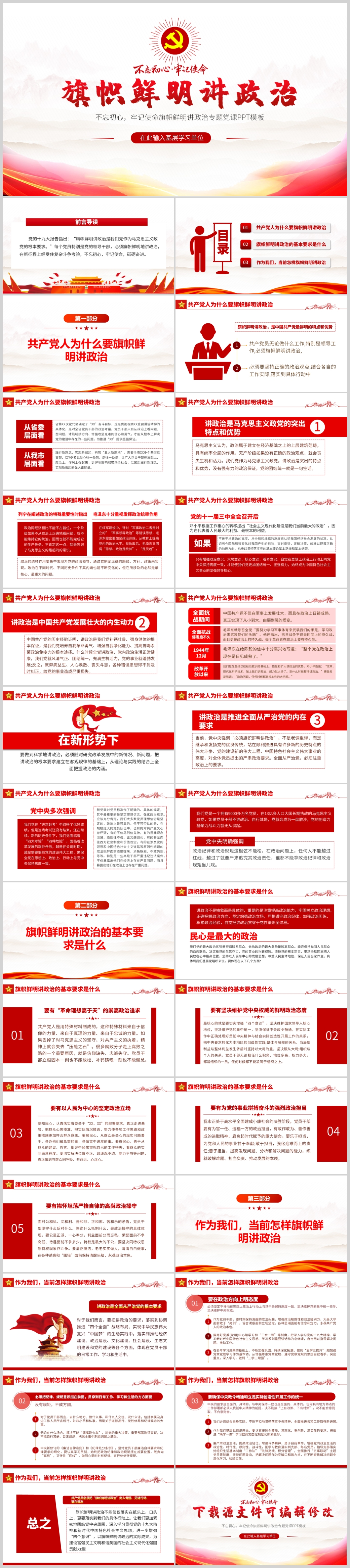 喜迎二十大聚焦“两个维护”深化党的政治建设主要工作党课PPT模板(内含WO