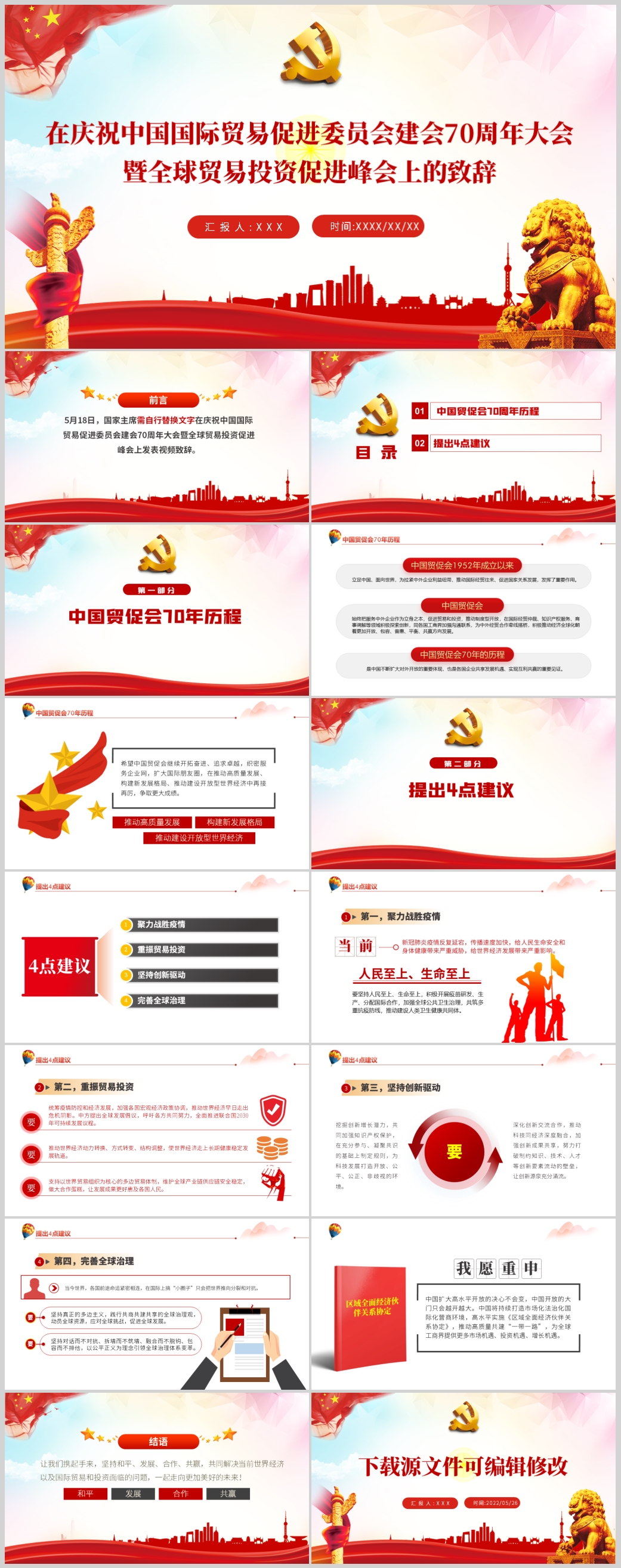 在庆祝中国国际贸易促进委员会建会70周年峰会解读ppt模板