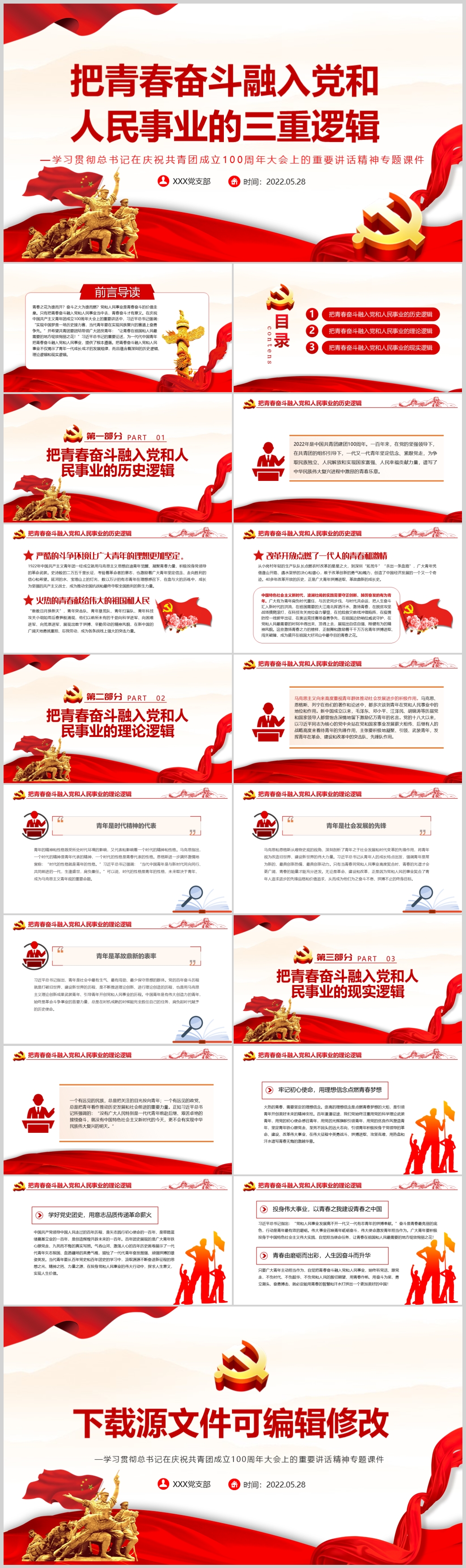 把青春奋斗融入党和人民事业的三重逻辑共青团成立100周年ppt模板(内含WORD演