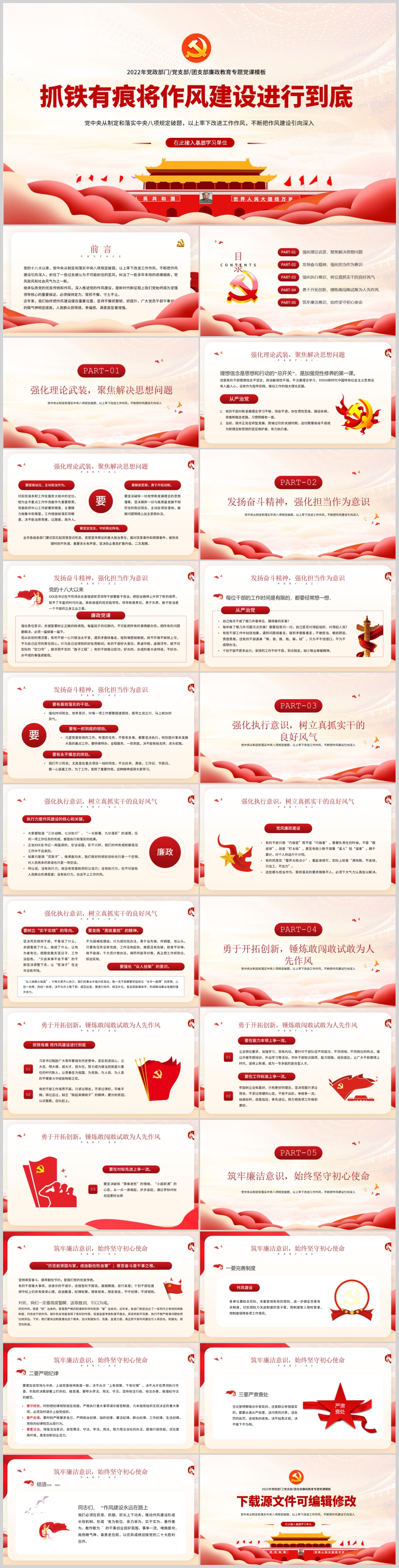 2022廉政作风建设抓实干担当作为良好风气党课PPT模板(内含WORD演讲稿)