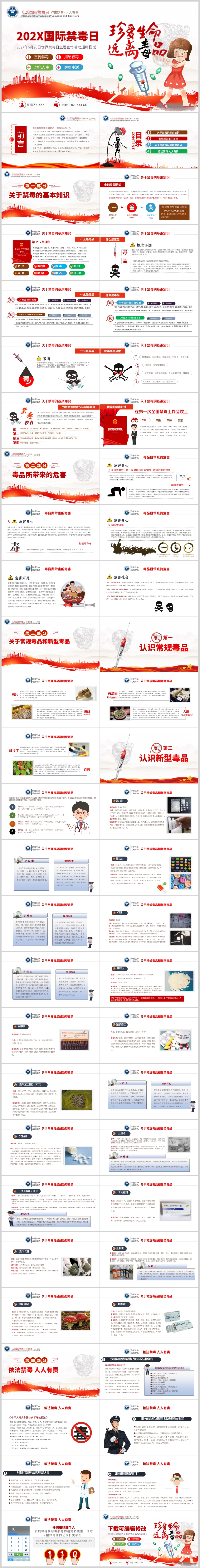 2022年国际禁毒日珍爱生命远离毒品禁毒防毒拒毒宣传课件PPT模板