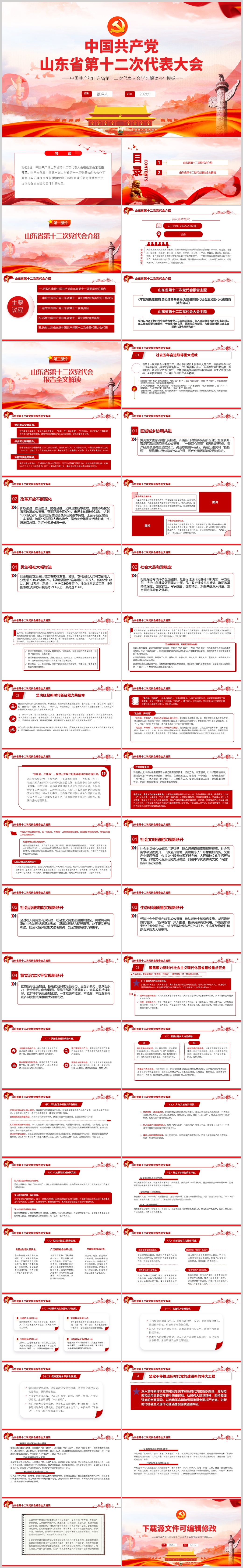 中国共产党山东省第十二党代会报告全文解读党课PPT模板