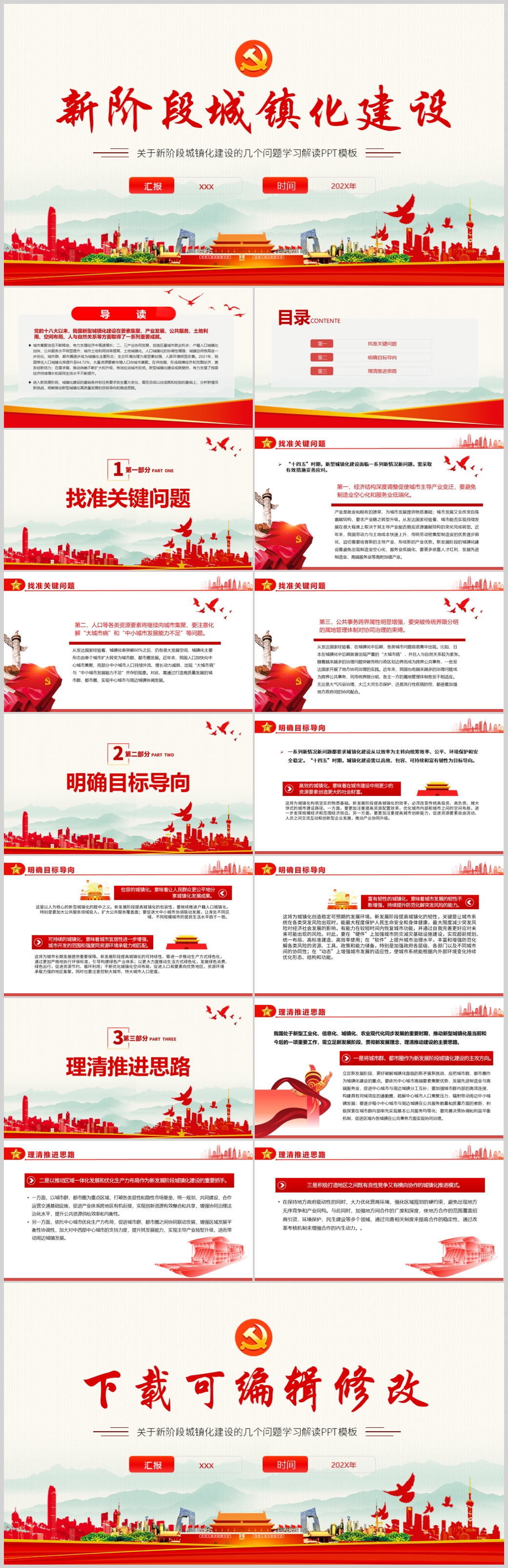 关于新阶段城镇化建设的几个问题专题党课PPT模板(内含WORD演讲稿)