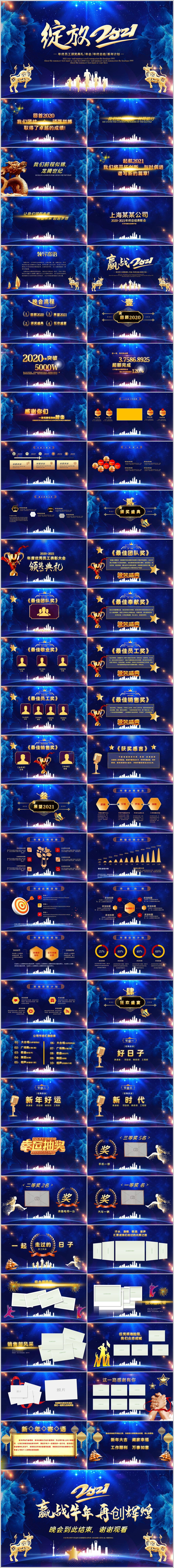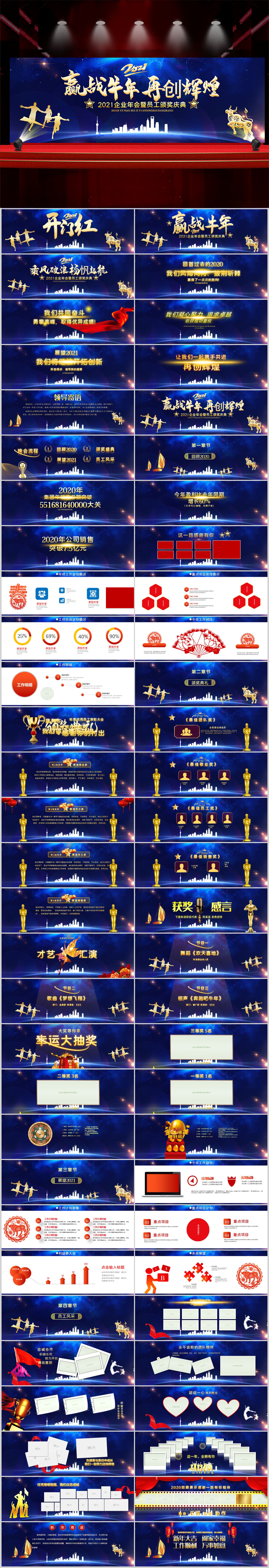蓝色大气赢战2021牛年震撼企业年会盛典颁奖典礼ppt模板