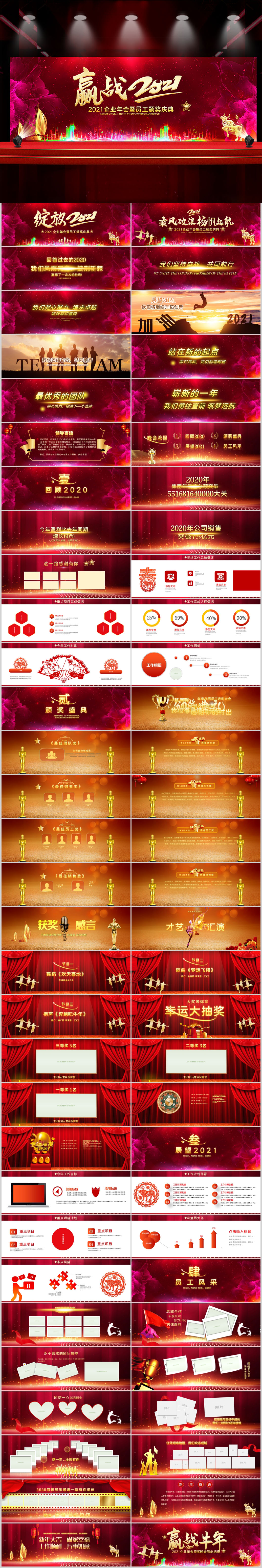 赢战2021红色大气宽屏企业颁奖盛典年会开场新年晚会ppt模板
