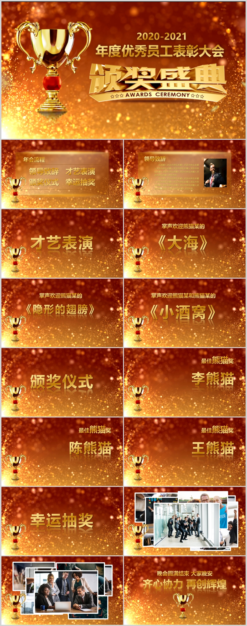 2021年金色大气优秀员工颁奖表彰大会ppt模板