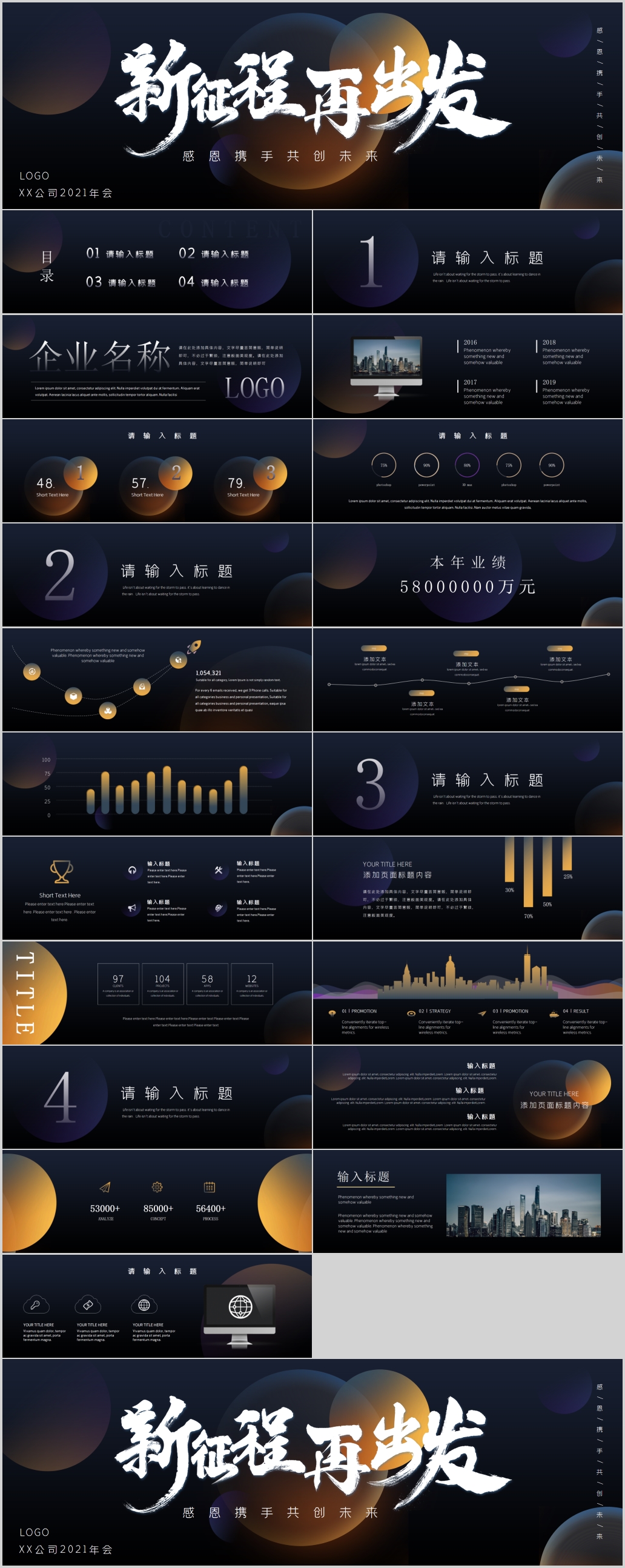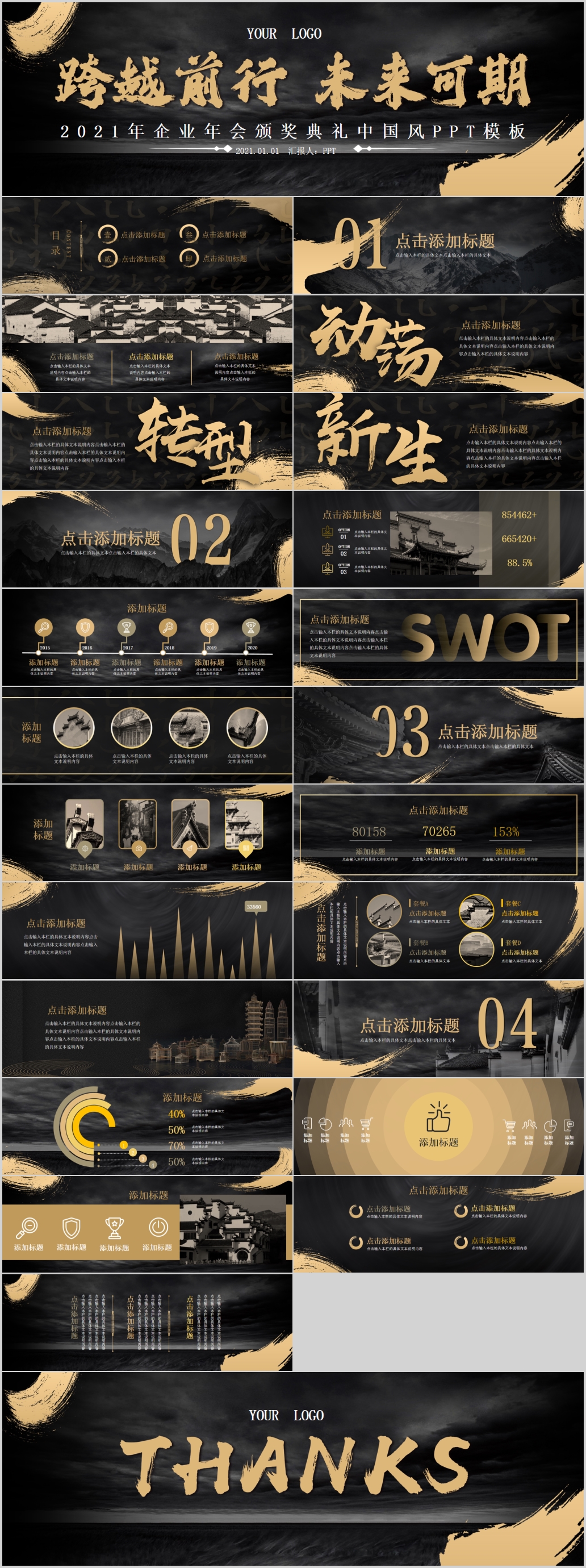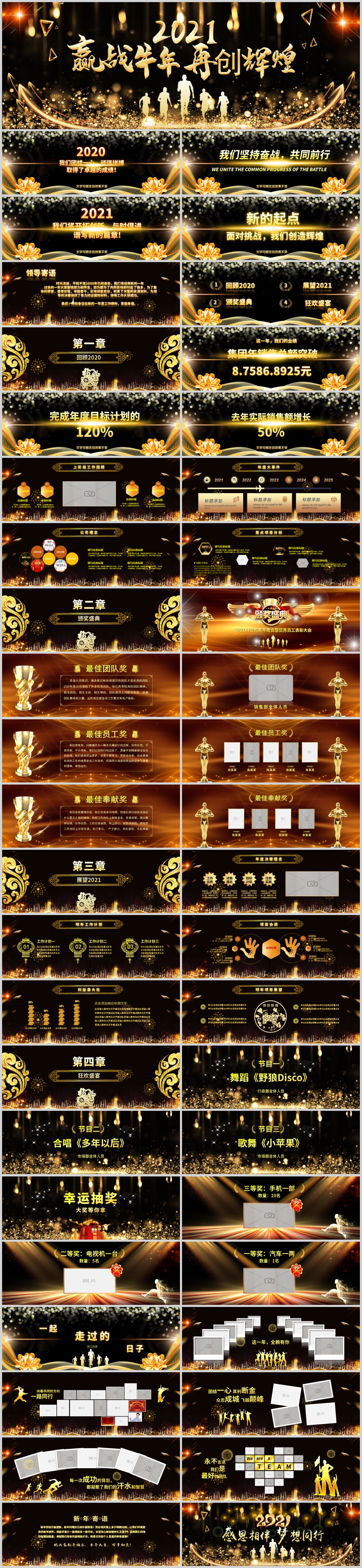 赢战牛年2021黑金震撼宽屏年终表彰颁奖晚会年会ppt模板