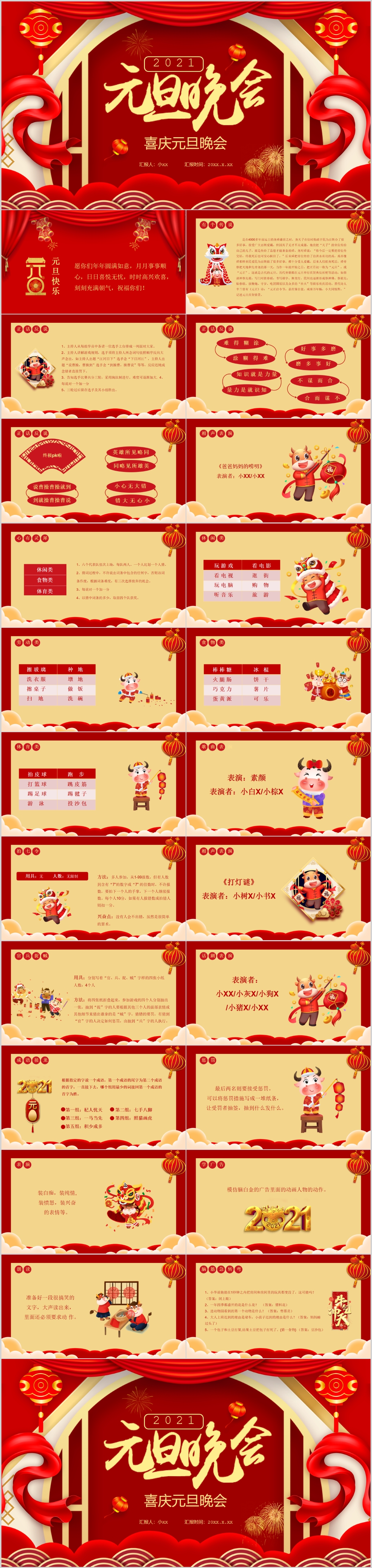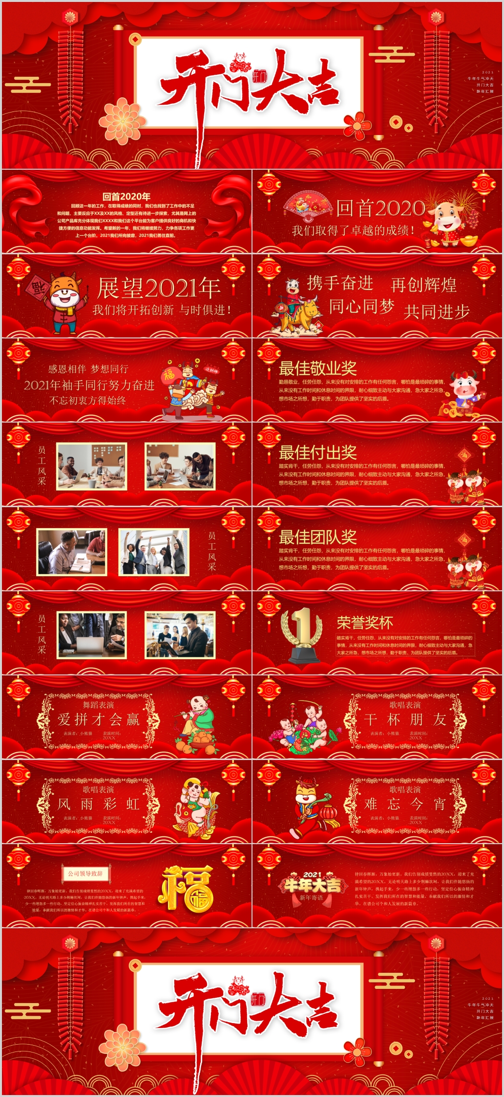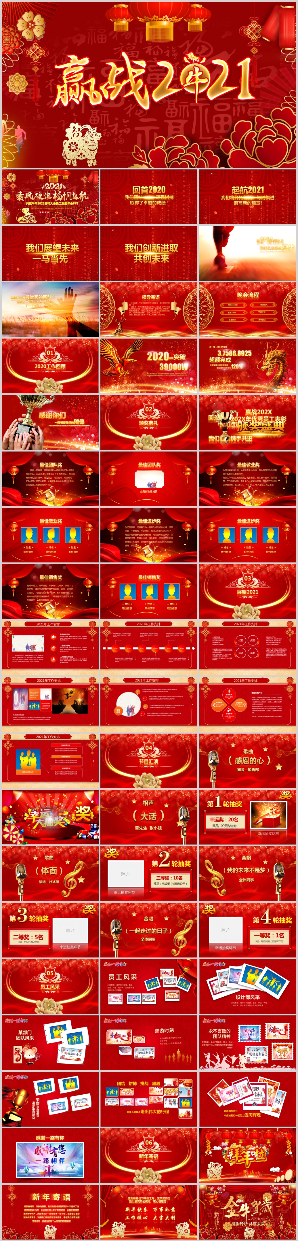 2021牛年红色喜庆新年春节联欢晚会颁奖典礼公司年会ppt