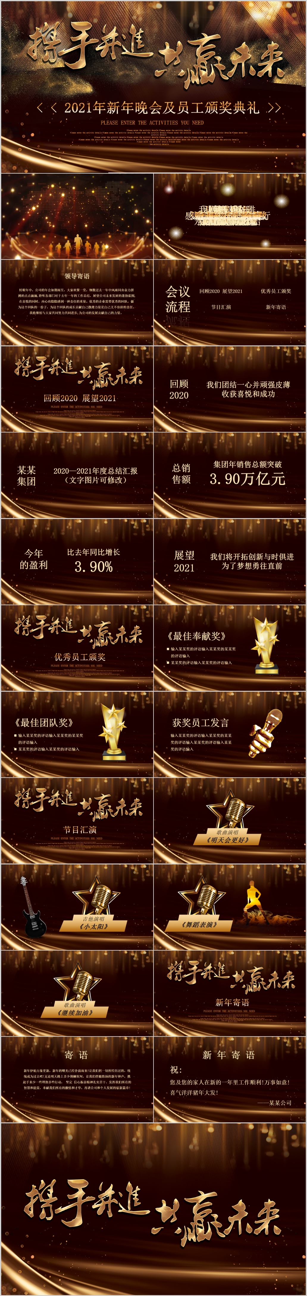 2021牛年金色大气年终优秀员工颁奖典礼表彰晚会ppt模板