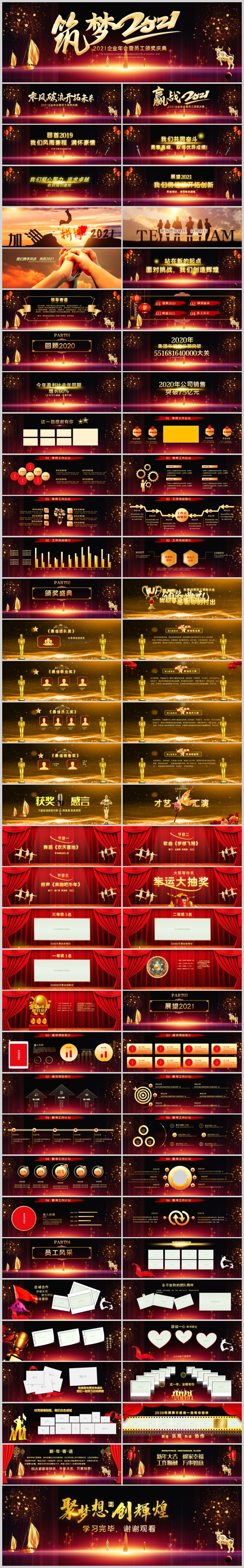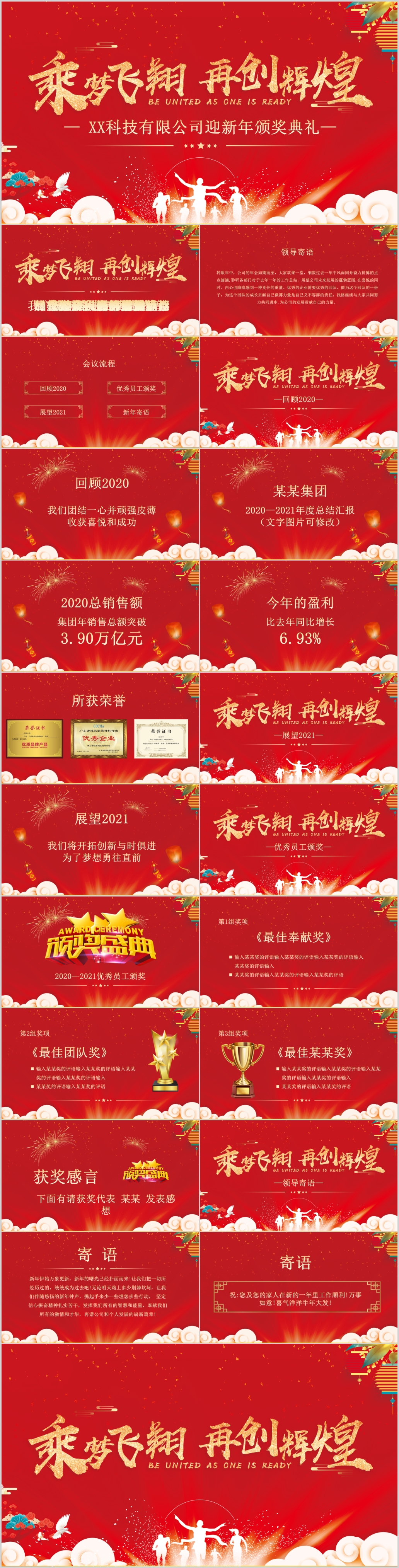 2021中国风喜庆新年春节颁奖表彰晚会牛年年会ppt模板