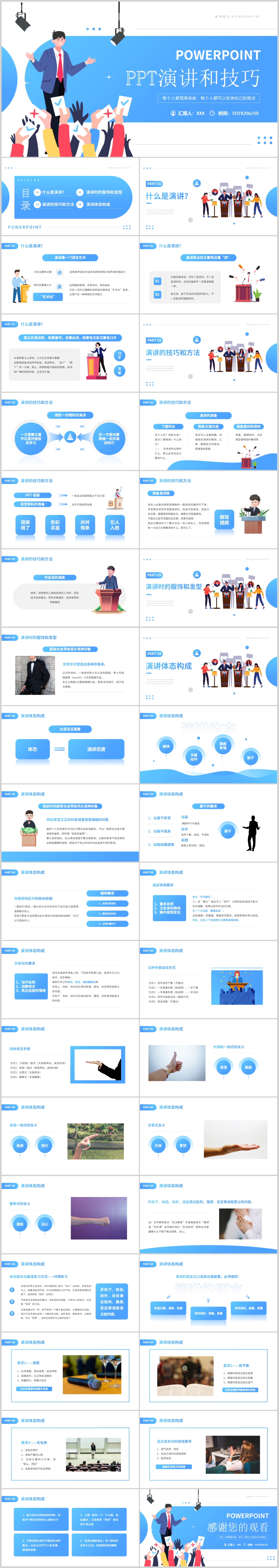 蓝色大气PPT演讲和技巧经验分享培训课件PPT模板