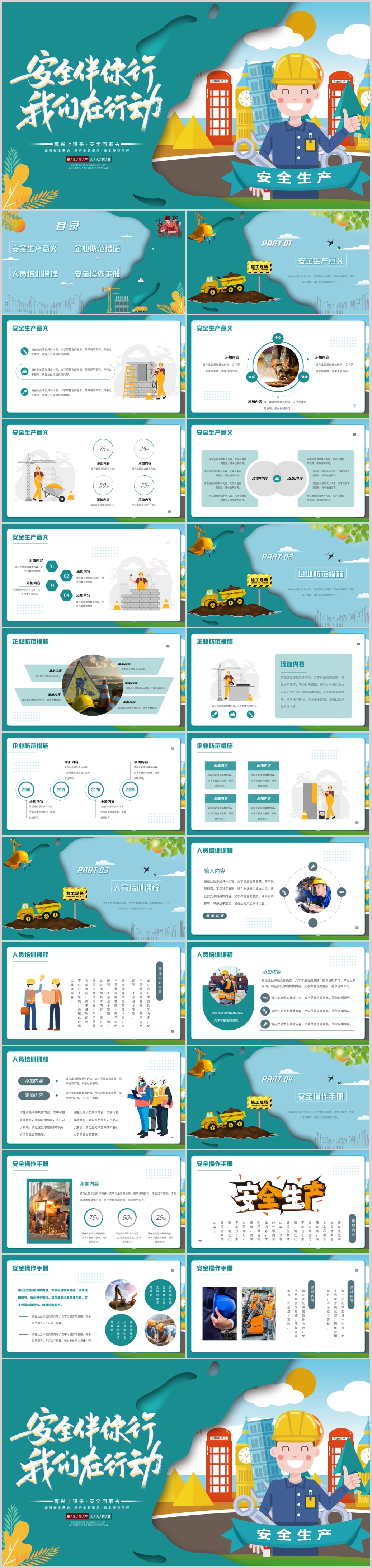 企业员工安全生产教育生产月入职商务培训PPT模板