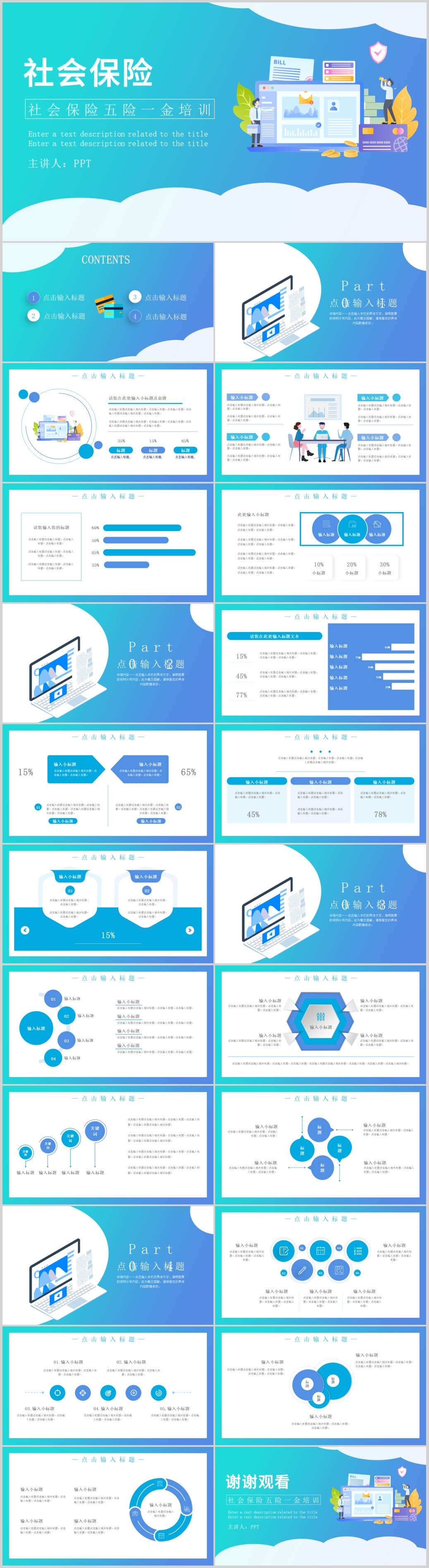 蓝色简约社会保险五险一金员工入职培训课件PPT模板