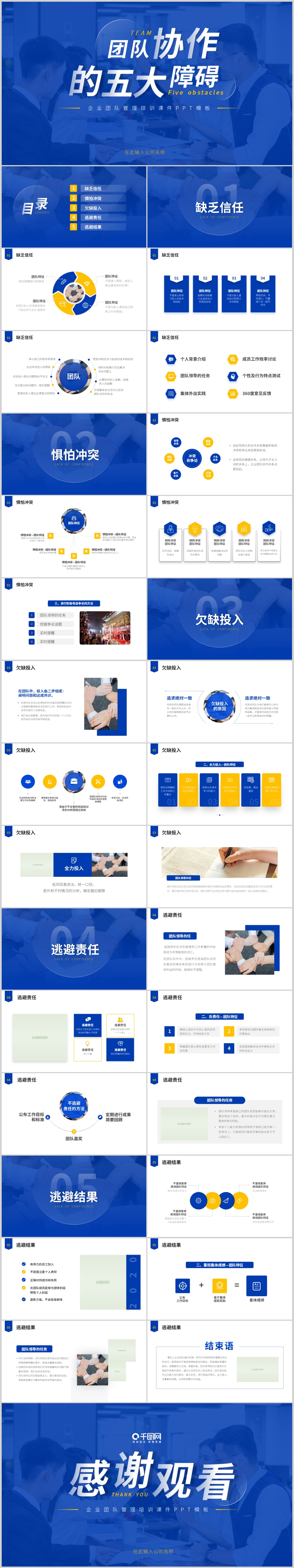 蓝色企业团队协作的五大障碍团队合作意识员工培训ppt模板