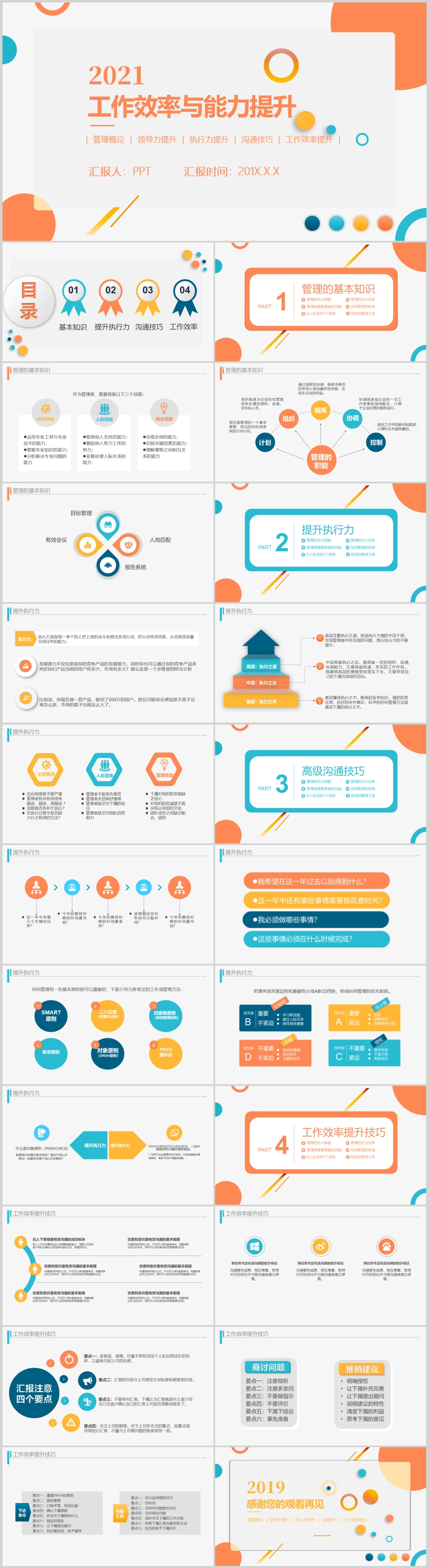 简约扁平化工作效率与能力提升企业服务员工培训PPT模板