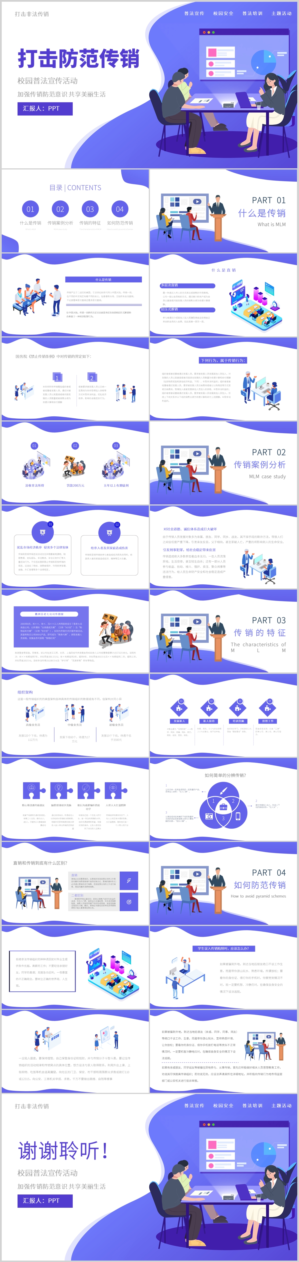 蓝色大气打击非法传销教育宣传动态PPT模板