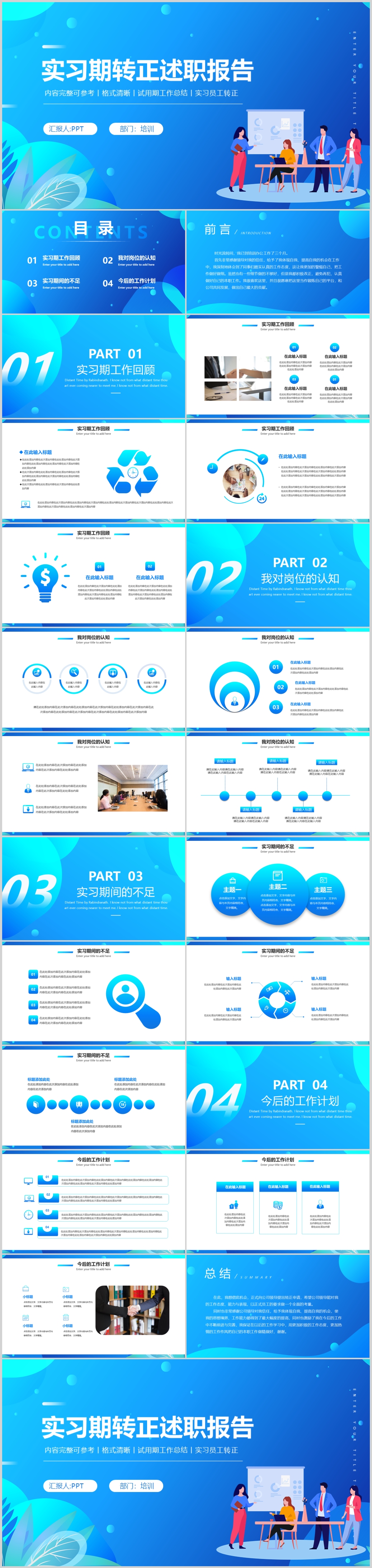 蓝色商务风格转正述职报告年终工作总结PPT模板