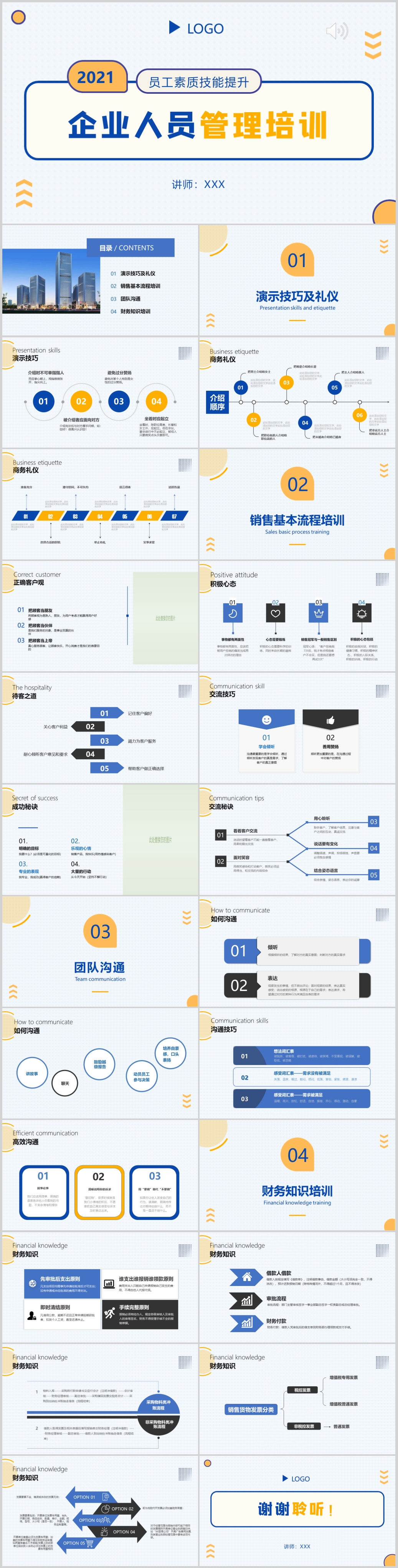 2021蓝色大气企业员工就职新入员工培训课件PPT模板
