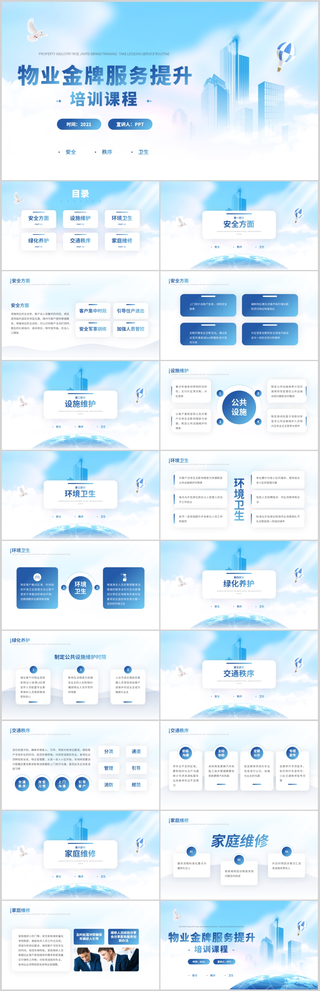 蓝色物业公司简介物业管理服务效益宣传培训PPT模板