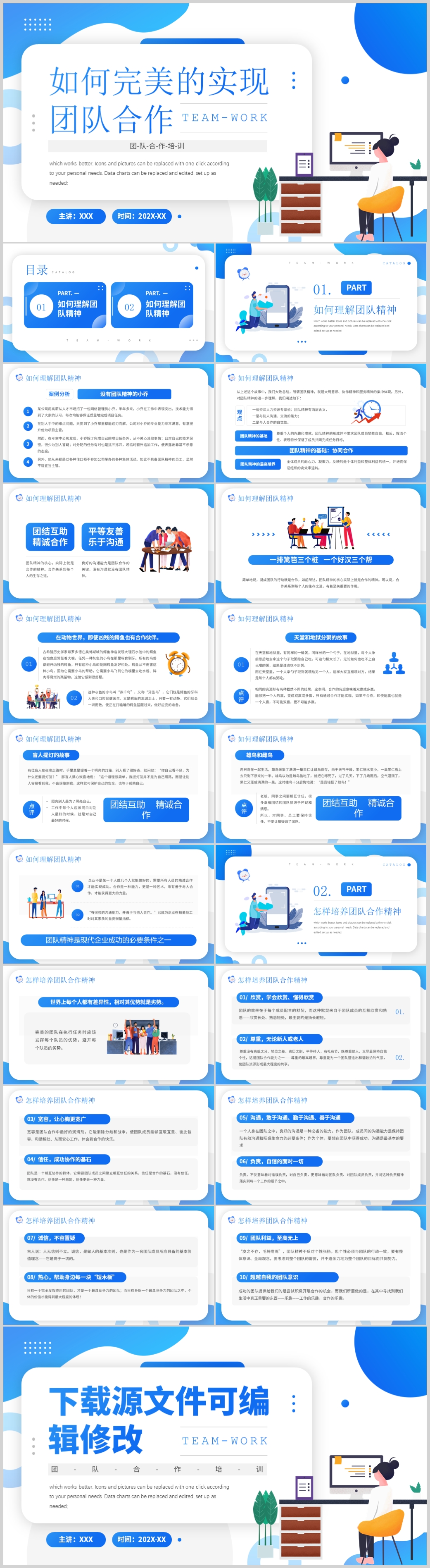 蓝色插画企业宣传战略合作管理培训ppt模板