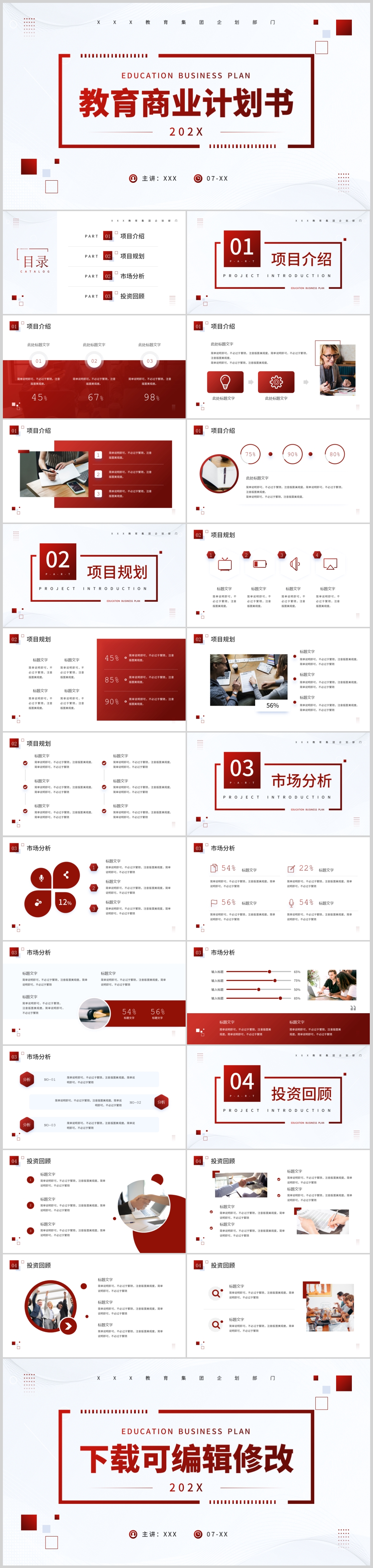 红色商业计划书公司简介商务投资业务通用PPT模板