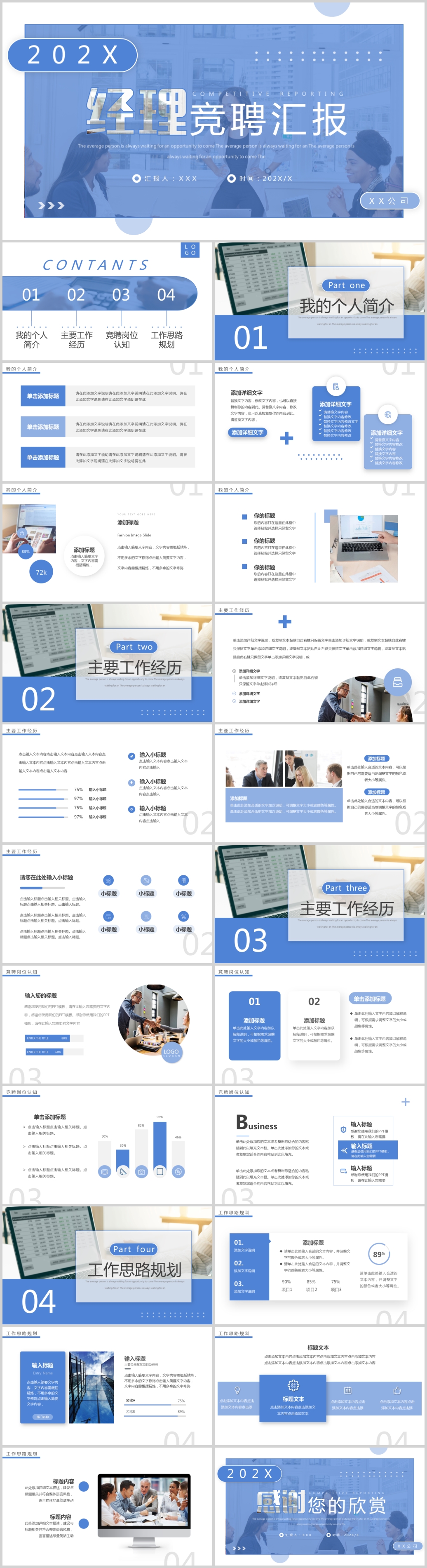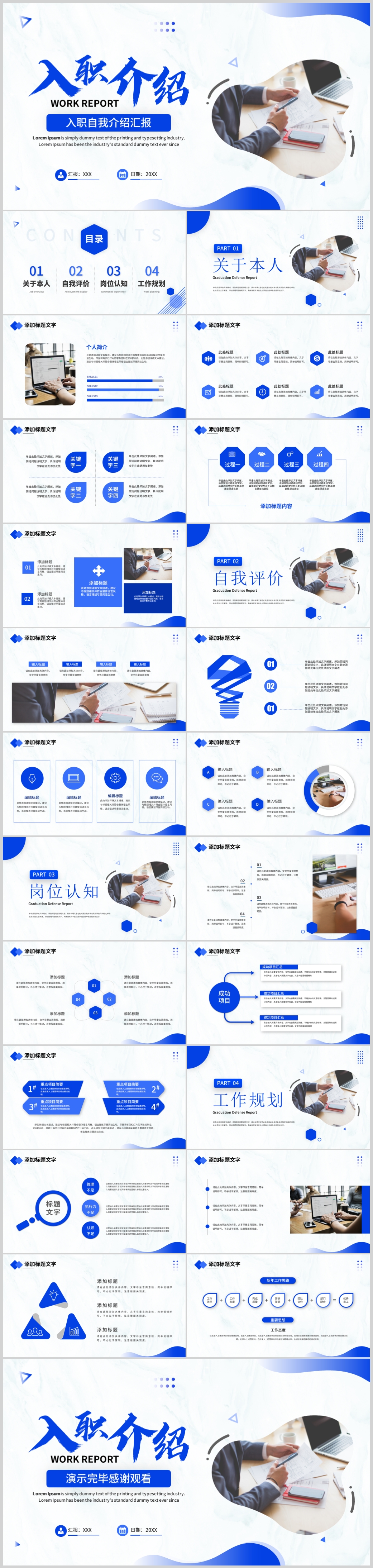 蓝色大气自我介绍入职职场规划工作ppt模板