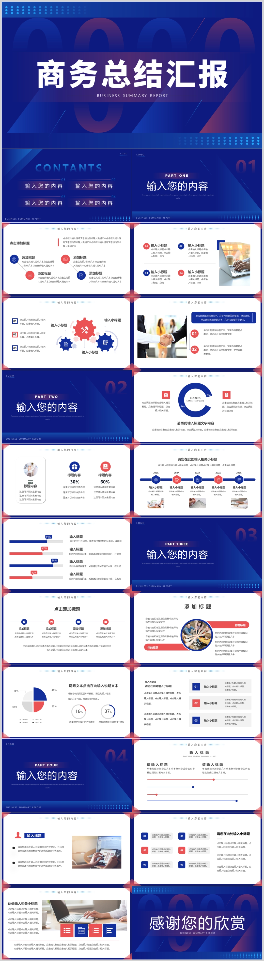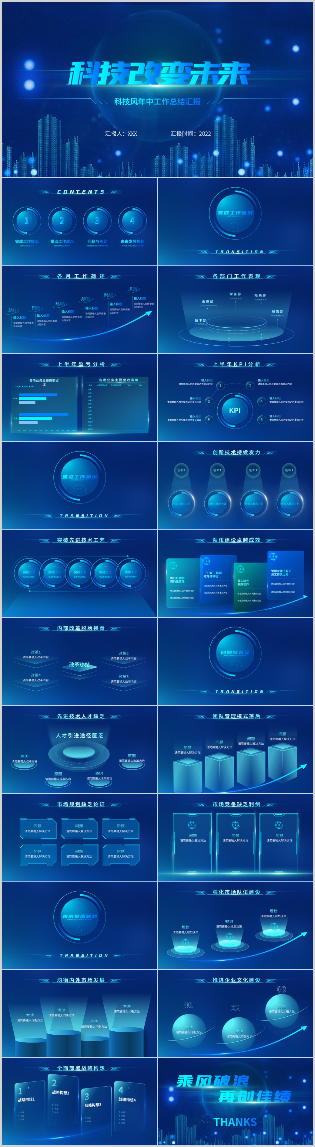 2022年蓝色互联是商务科技商务总结汇报通用PPT模板